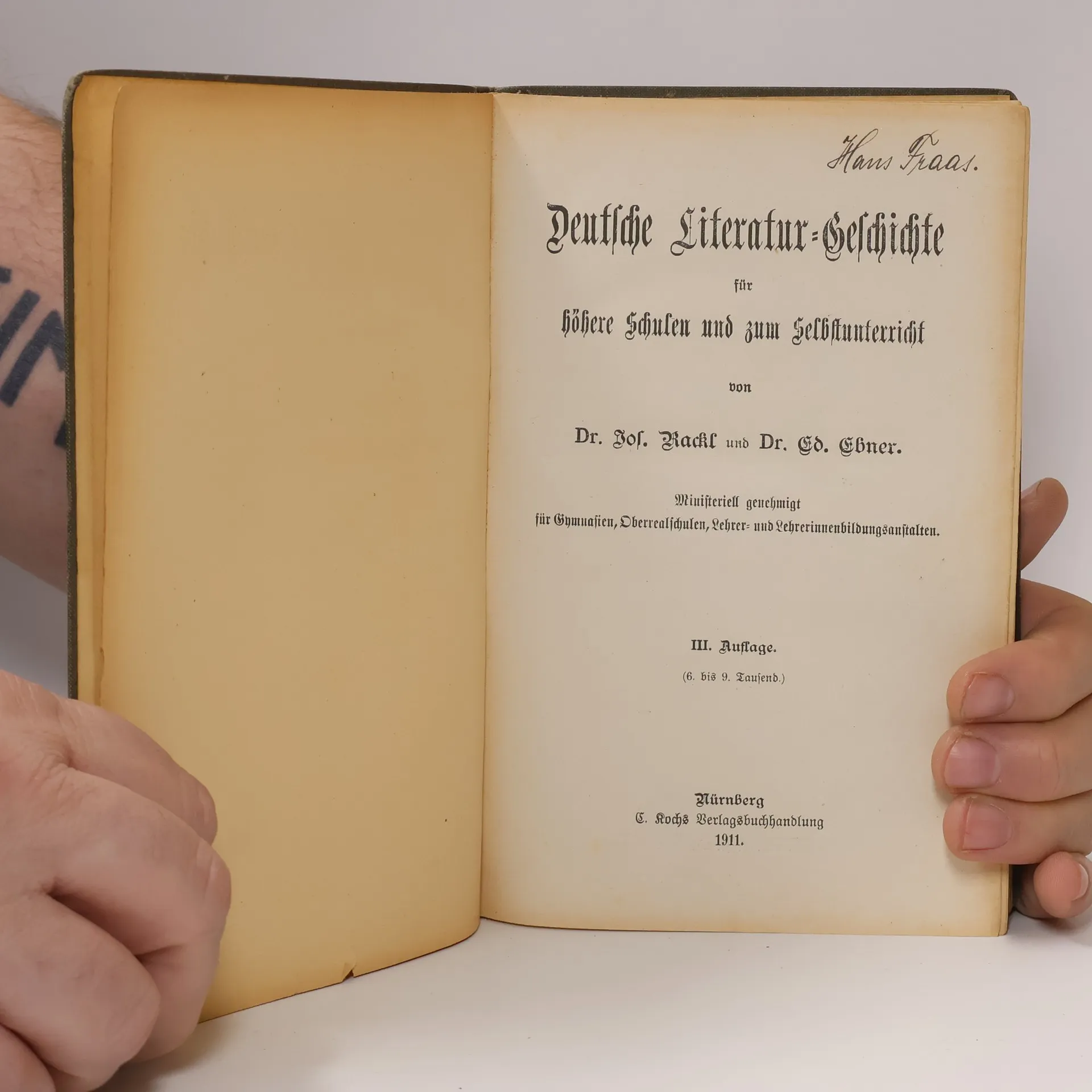 Deutsche Literatur-Geschichte für höhere Schulen und zum Selbstunterricht, Josef Rackl, Eduard Ebner