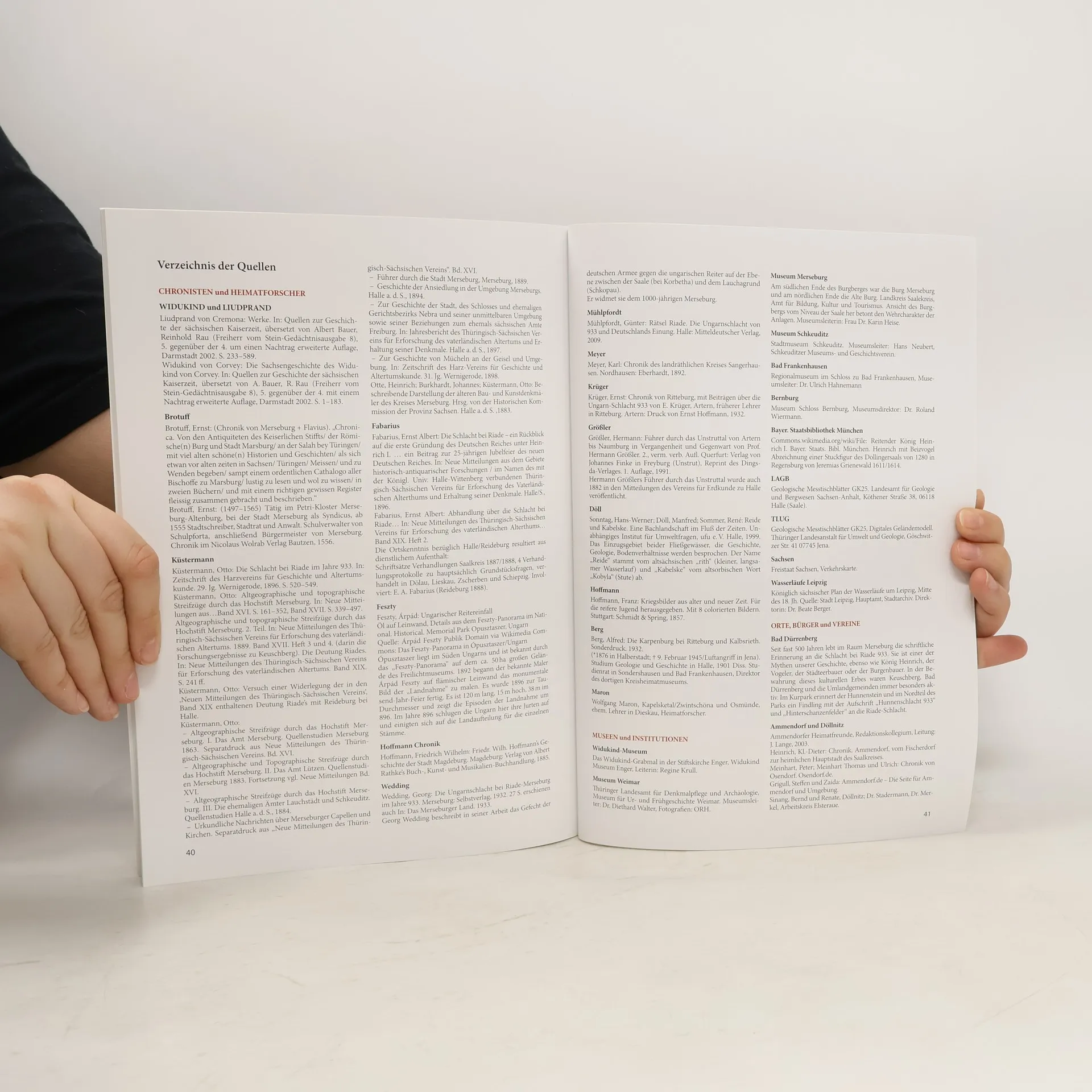 Das Heft erzählt die Geschichte von RIADE und beleuchtet im ersten Kapitel die zahlreichen Versuche von Wissenschaftlern und Heimatforschern, den Standort des vergessenen Schlachtfeldes von Riade zu bestimmen. Die Suche konzentrierte sich auf Gebiete südlich von Merseburg und an der Unstrut, wobei die Ergebnisse für den Raum Merseburg sprechen. Der ehemalige Bürgermeister Brotuff von Merseburg spielte eine bedeutende Rolle. Ende des 19. Jahrhunderts verorteten verschiedene Forscher das Schlachtfeld in der Nähe von Merseburg, Halle und Ritteburg. 1933 entbrannte die Diskussion erneut, an der Wissenschaftler und Historiker beteiligt waren. Günter Mühlpfordt favorisierte 2009 ein Schilfgebiet am Süd-Ost-Rand von Halle. Das zweite Kapitel behandelt die objektiven Kriterien der Kriegsführung, wobei das Elstertal-Ried eine Schlüsselrolle für die Schlacht von Riade und die Ostexpansion des deutschen Reichs spielte. Wichtige Fragen zur ungarischen Kriegsführung und den militärischen Vorbereitungen König Heinrichs I. werden behandelt. Die Bände „Riade - die Schlacht“ und „Riade - die Suche nach dem Schlachtfeld“ bieten Antworten. Letztlich wird das Schlachtfeld „Riade“ an der Reide bei Osendorf lokalisiert, während die „Burg des Thüringer Wido“ im Raum Ammendorf-Schkeuditz-Landsberg/Reideburg vermutet wird.