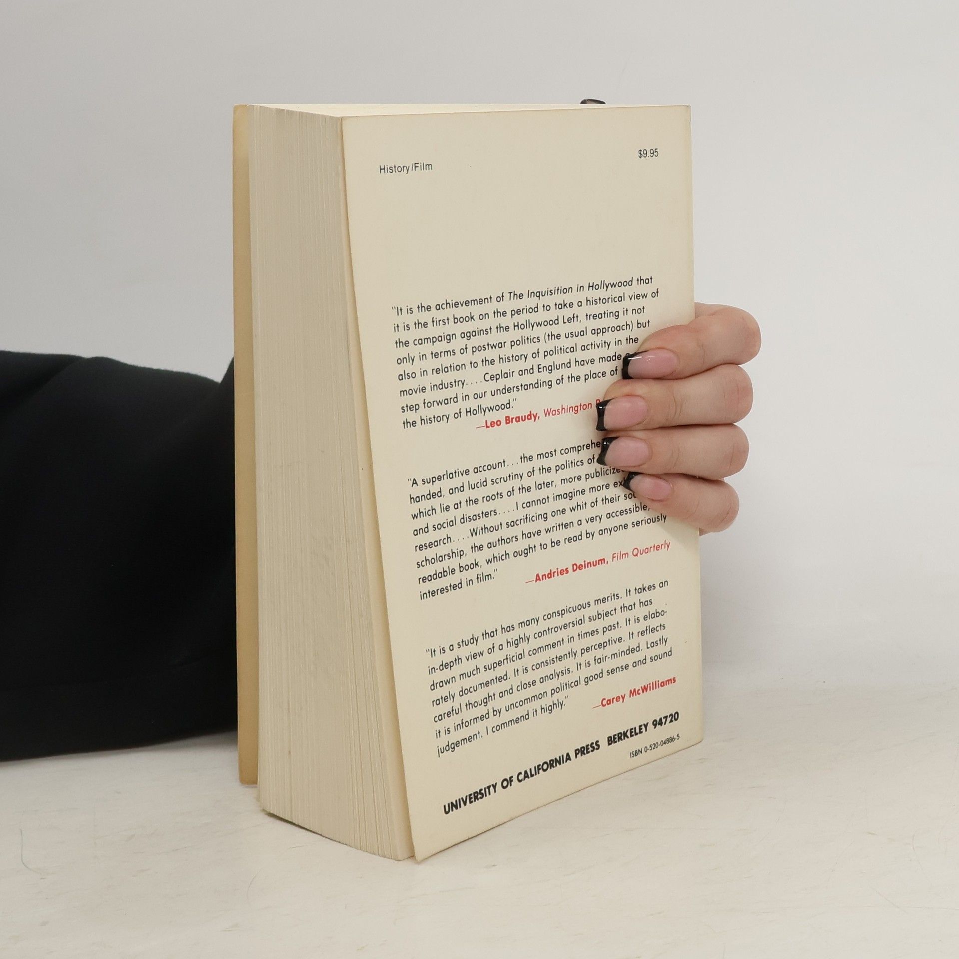 "The Inquisition in Hollywood examines the suppression of radical political activity in the film industry from the days of the Great Depression through the tumultuous House Un-American Activities Committee era to the waning days of the infamous blacklist." "Although this thirty-year period of American history is marked by widespread targeting of leftists in all areas of life, those in the film industry - predominately screenwriters - were considered to be in positions of great potential indoctrinating power, and found themselves under intense scrutiny as the cold war hysteria mounted. Ceplair and Englund trace the history of political struggle in Hollywood back to the formation of the Screen Writers Guild in 1933. Many of the blacklisted filmmakers were members of the Communist Party and all of the graylisted filmmakers had expressed their sympathy with progressive (mainly anti-fascist) causes."--BOOK JACKET.