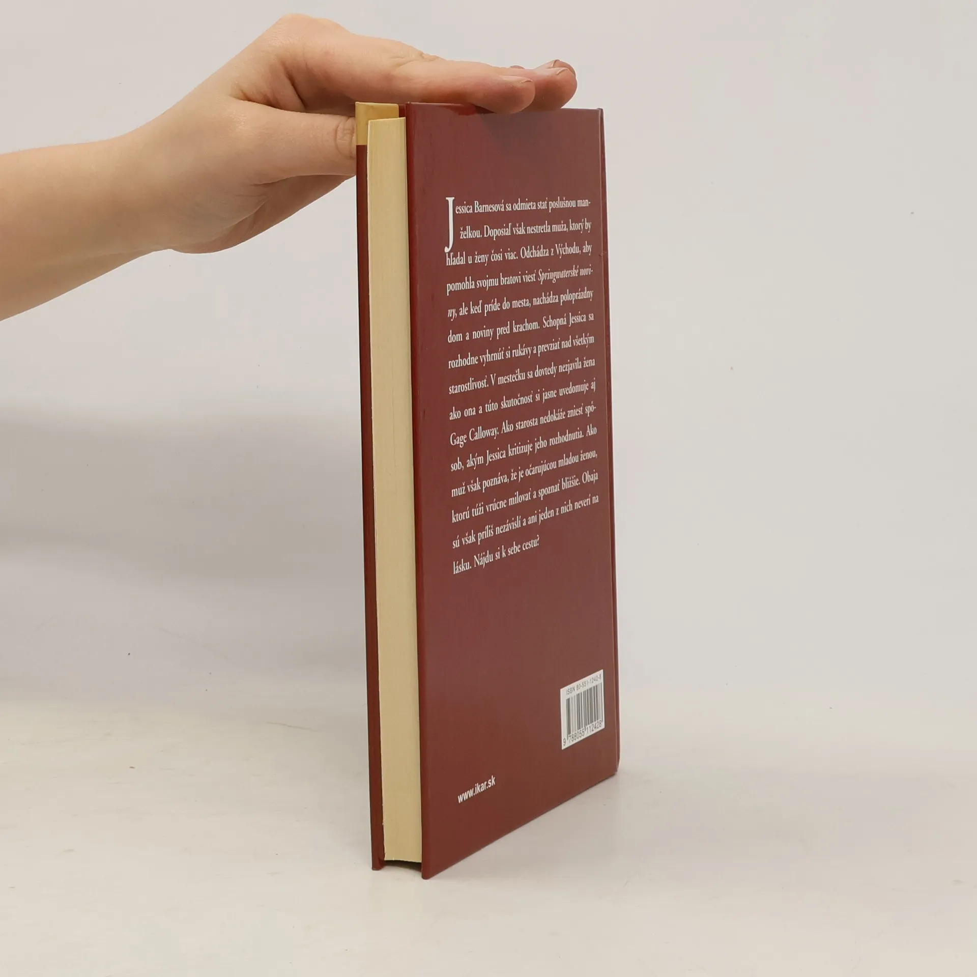 Jessica Barnesová sa odmieta stať poslušnou manželkou a doposiaľ ešte nestretla muža, ktorý by hľadal u ženy čosi viac. Odchádza z Východu, aby pomohla svojmu bratovi viesť Springwaterské noviny, ale keď príde do mesta, nachádza poloprázdny dom a noviny pred krachom. Schopná Jessica sa rozhodne vyhrnúť si rukávy a prevziať nad všetkým starostlivosť. V mestečku sa dovtedy nezjavila žena ako ona a túto skutočnosť si jasne uvedomuje aj Gage Calloway. Ako starosta nedokáže zniesť spôsob, akým Jessica kritizuje jeho rozhodnutia. Ako muž však poznáva, že je očarujúcou mladou ženou, ktorú túži vrúcne milovať a spoznať bližšie. Obaja sú však príliš nezávislí a ani jeden z nich neverí na lásku. Nájdu si k sebe cestu?