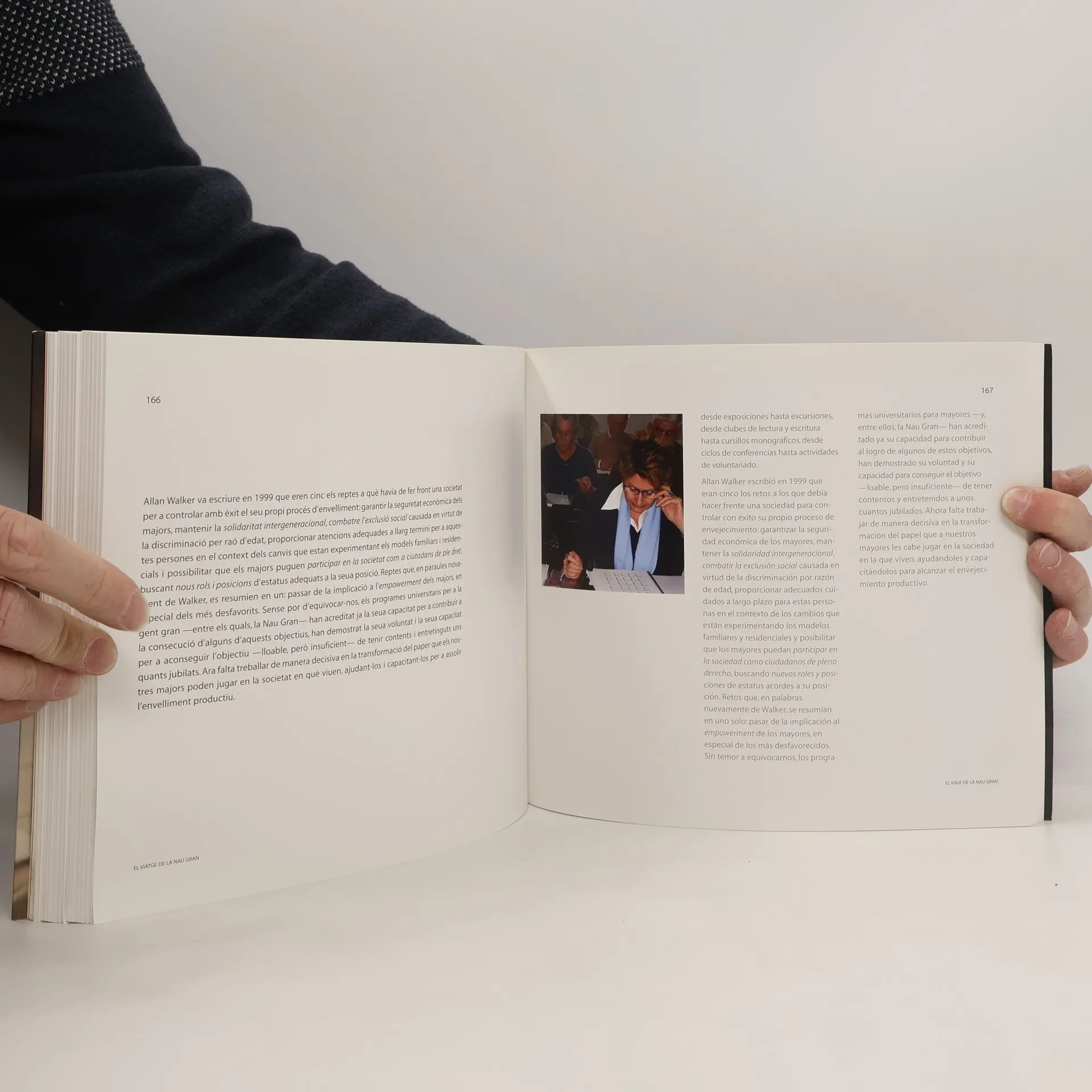 Aproximación temática al programa universitario para estudiantes mayores de 55 años de la Universitat de València. Utilizando la metáfora del viaje como hilo conductor, el catálogo de la exposición pretende dar a conocer el proyecto de la Nau Gran. En su diseño y concepción colabora una amplia comisión intergeneracional formada por estudiantes de la Nau Gran y de diferentes titulaciones. La Nau Gran inició su andadura en 1999, sumándose, de manera decidida, a los programas universitarios para mayores que por entonces comenzaban a implantarse en buena parte de las universidades españolas como Salamanca, Granada y Sevilla.