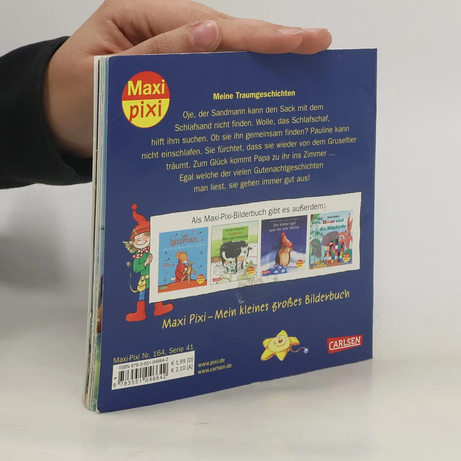 Oje, der Sandmann kann den Sack mit dem Schlafsand nicht finden. Wolle, das Schlafschaf, hilft ihm suchen. Aber der Sack bleibt spurlos verschwunden ... Pauline kann nicht einschlafen. Sie fürchtet, dass sie wieder von dem Gruseltier träumt. Zum Glück kommt Papa zu ihr ins Zimmer ... Egal welche der vielen Gutenachtgeschichten man liest, sie gehen immer gut aus! Maxi Pixi – die kleinen großen Bilderbücher im Softcover.