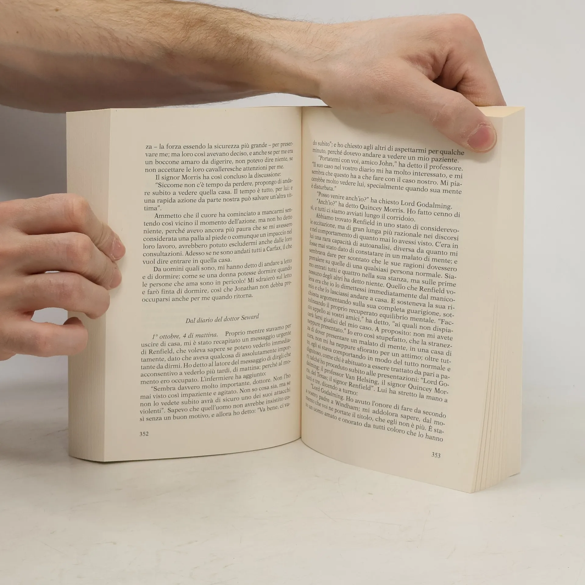 “Basta l’inizio: con questo Jonathan Harker, procuratore legale in quel di Exeter, che arriva in Transilvania, e si trova immediatamente avvolto in un clima di mistero e di scongiuri, fino a che di notte, tra lontani lupi che ululano e cavalli dalle narici infuocate, arriva in un castello dove un signore vestito di nero, dagli occhi troppo rossi e dai denti troppo bianchi… e il gioco è fatto! Impossibile uscire da quel clima, impossibile allentare la tensione, e non seguire con ansia partecipe la sorte di quei personaggi. Perché – bene o male – questo dandy dalla tetra figura ci attira e ci spaventa al tempo stesso (come tutto ciò che è peccato o che ci fa ingrassare); perché Mina diventa l’oggetto di tutte le nostre preoccupazioni; perché del professor Van Helsing sposiamo l’indefessa fede nell’inconoscibile e nel mistero, e la sua integerrima crociata contro il Maligno; perché la schermaglia tra Dracula che architetta il suo ritorno a casa e gli altri che ne svelano a una a una le mosse finisce con l’appassionarci e con il coinvolgerci come per una partita a scacchi; fino allo strepitoso finale, quando le tre diverse pattuglie dei ‘cacciatori’ convergono – con un ritmo che ricorda quasi lo stretto di una fuga per organo o l’‘arrivano i nostri’ dei migliori film western – a sbarrare al Vampiro la strada verso il castello della sua sicurezza.” (dalla Prefazione di Luigi Lunari)