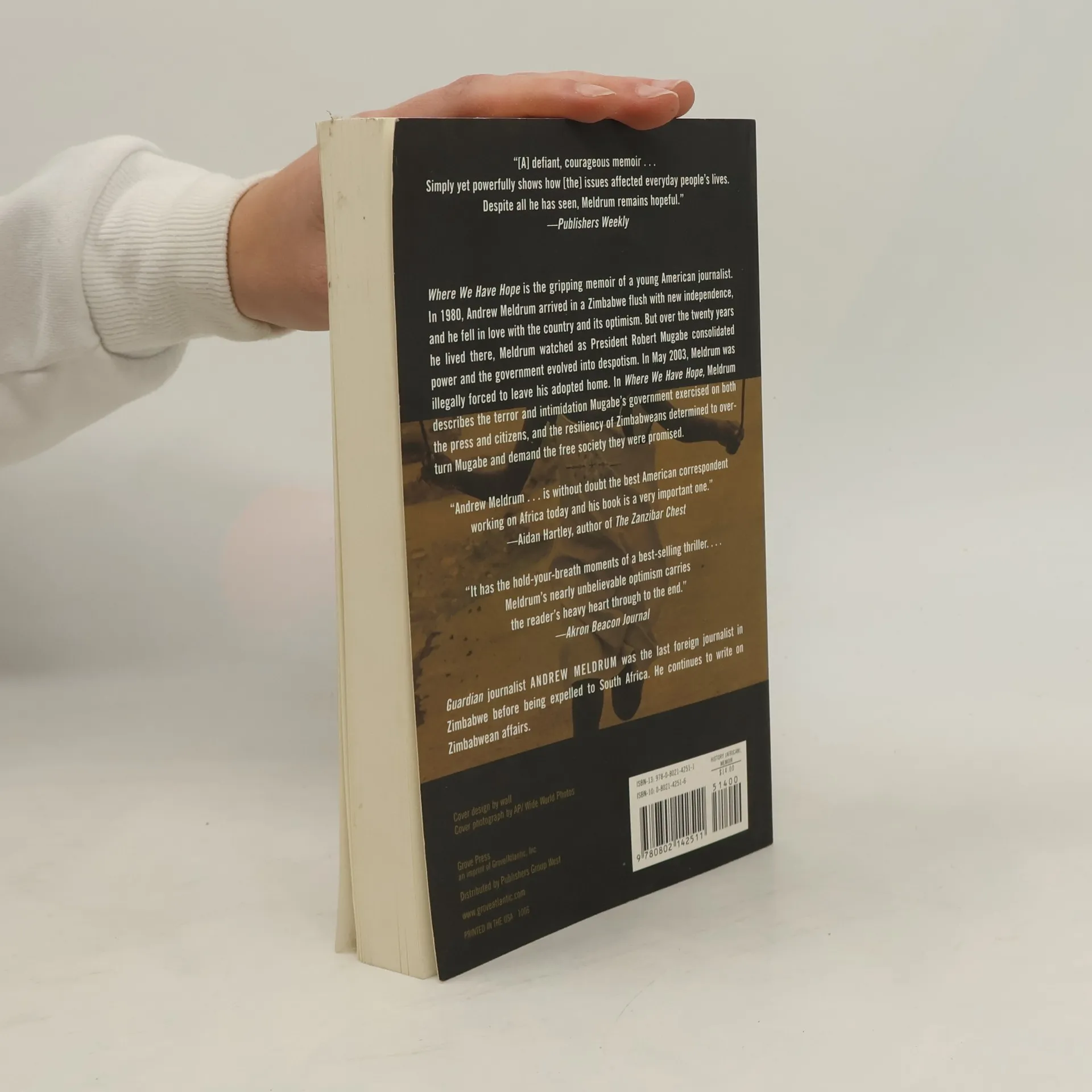 Where We Have Hope is the gripping memoir of a young American journalist. In 1980, Andrew Meldrum arrived in a Zimbabwe flush with new independence, and he fell in love with the country and its optimism. But over the twenty years he lived there, Meldrum watched as President Robert Mugabe consolidated power and the government evolved into despotism. In May 2003, Meldrum, the last foreign journalist still working in the dangerous and chaotic nation, was illegally forced to leave his adopted home. His unflinching work describes the terror and intimidation Mugabe’s government exercised on both the press and citizens, and the resiliency of Zimbabweans determined to overturn Mugabe and demand the free society they were promised.
