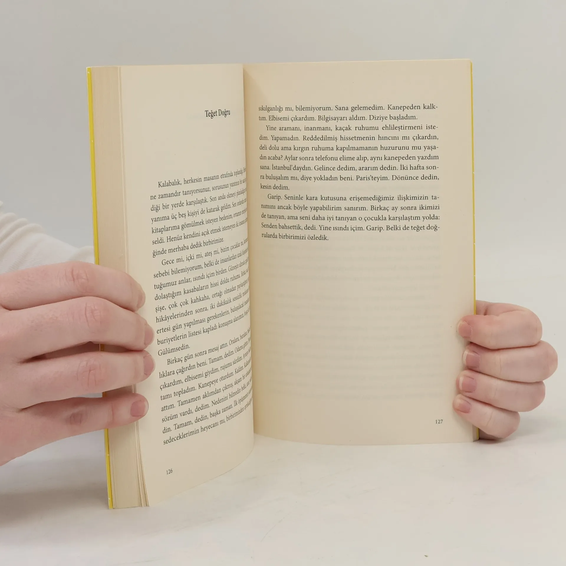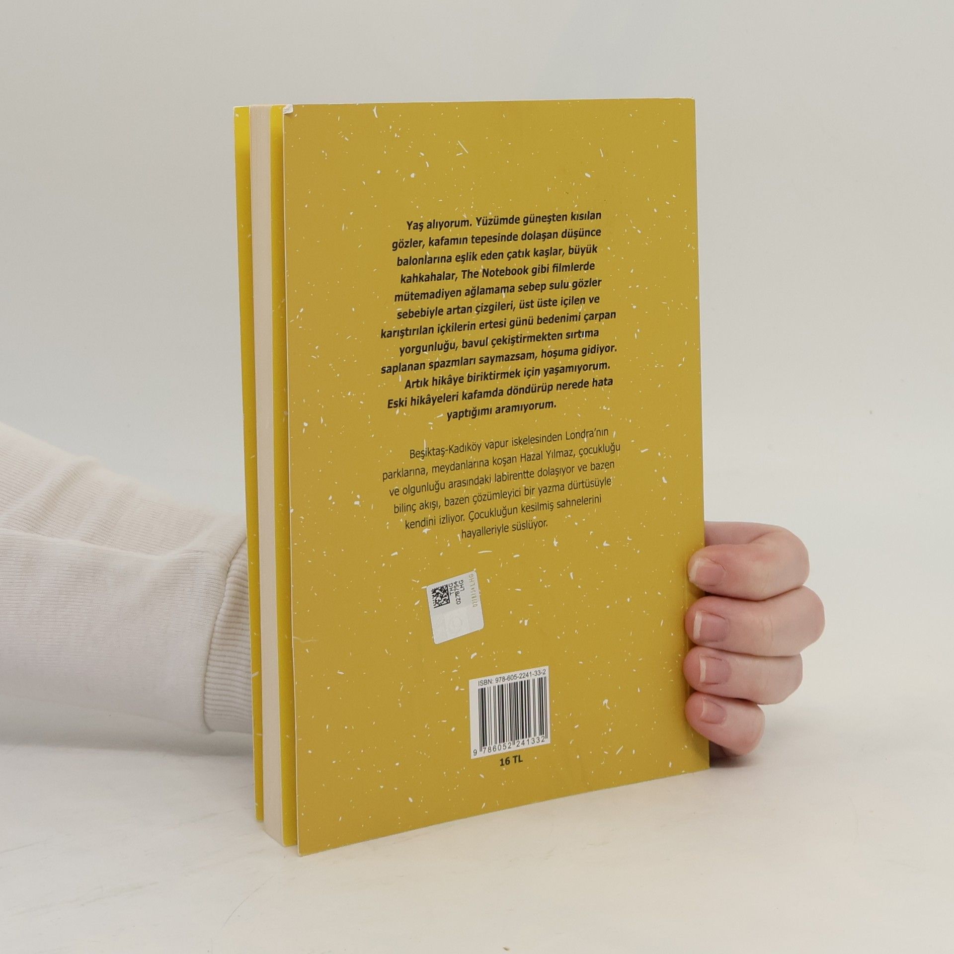 “Yaş alıyorum. Yüzümde güneşten kısılan gözler, kafamın tepesinde dolaşan düşünce balonlarına eşlik eden çatık kaşlar, büyük kahkahalar, The Notebook gibi filmlerde mütemadiyen ağlamama sebep sulu gözler sebebiyle artan çizgileri, üst üste içilen ve karıştırılan içkilerin ertesi günü bedenimi çarpan yorgunluğu, bavul çekiştirmekten sırtıma saplanan spazmları saymazsam, hoşuma gidiyor.Artık hikâye biriktirmek için yaşamıyorum. Eski hikâyeleri kafamda döndürüp nerede hata yaptığımı aramıyorum.”Beşiktaş-Kadıköy vapur iskelesinden Londra’nın parklarına, meydanlarına koşan Hazal Yılmaz, çocukluğu ve olgunluğu arasındaki labirentte dolaşıyor ve bazen bilinç akışı, bazen çözümleyici bir yazma dürtüsüyle kendini izliyor. Çocukluğun kesilmiş sahnelerini hayalleriyle süslüyor.
