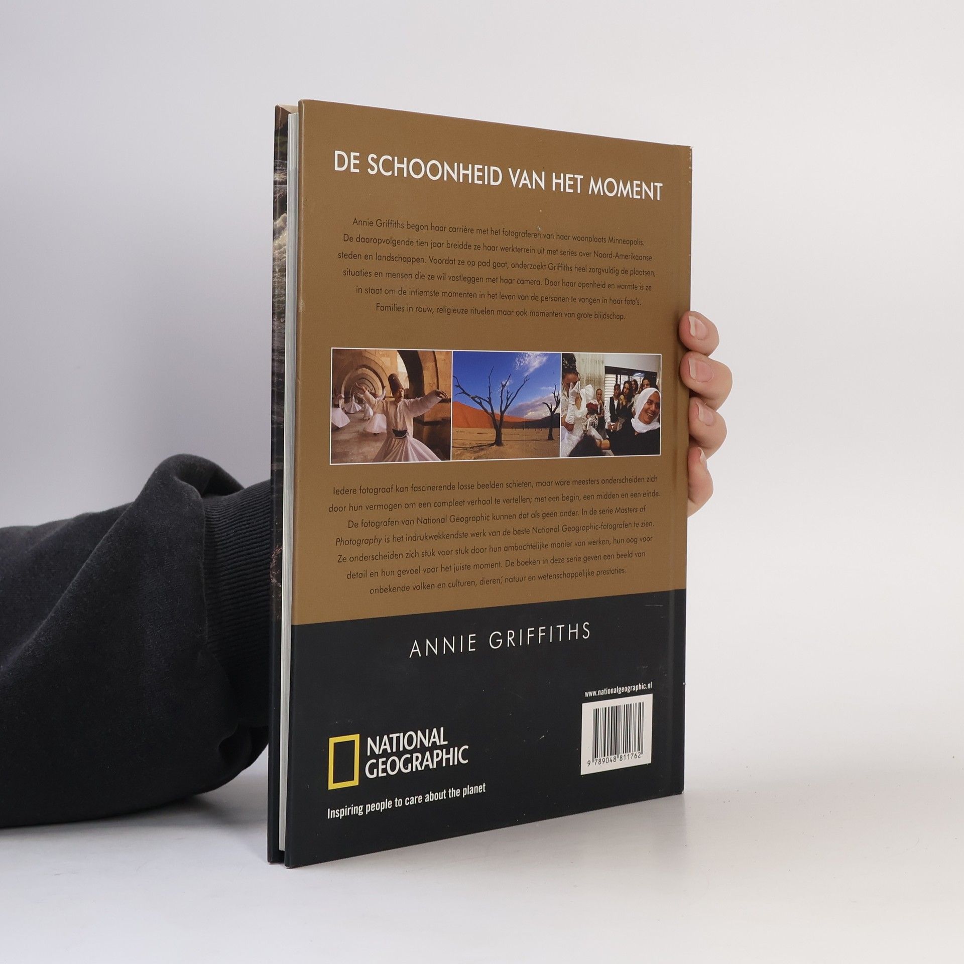 Annie Griffiths (....) begon haar carrière met het fotograferen van haar woonplaats Minneapolis. De daaropvolgende tien jaar breidde ze haar werkterrein uit met series over Noord-Amerikaanse steden en landschappen. Voordat ze op pad gaat, onderzoekt Griffiths heel zorgvuldig de plaatsen, situaties en mensen die ze wil vastleggen met haar camera. Door haar openheid en warmte is ze in staat om de intiemste momenten in het leven van de personen te vangen in haar foto's. Families in rouw, religieuze rituelen maar ook momenten van grote blijdschap.