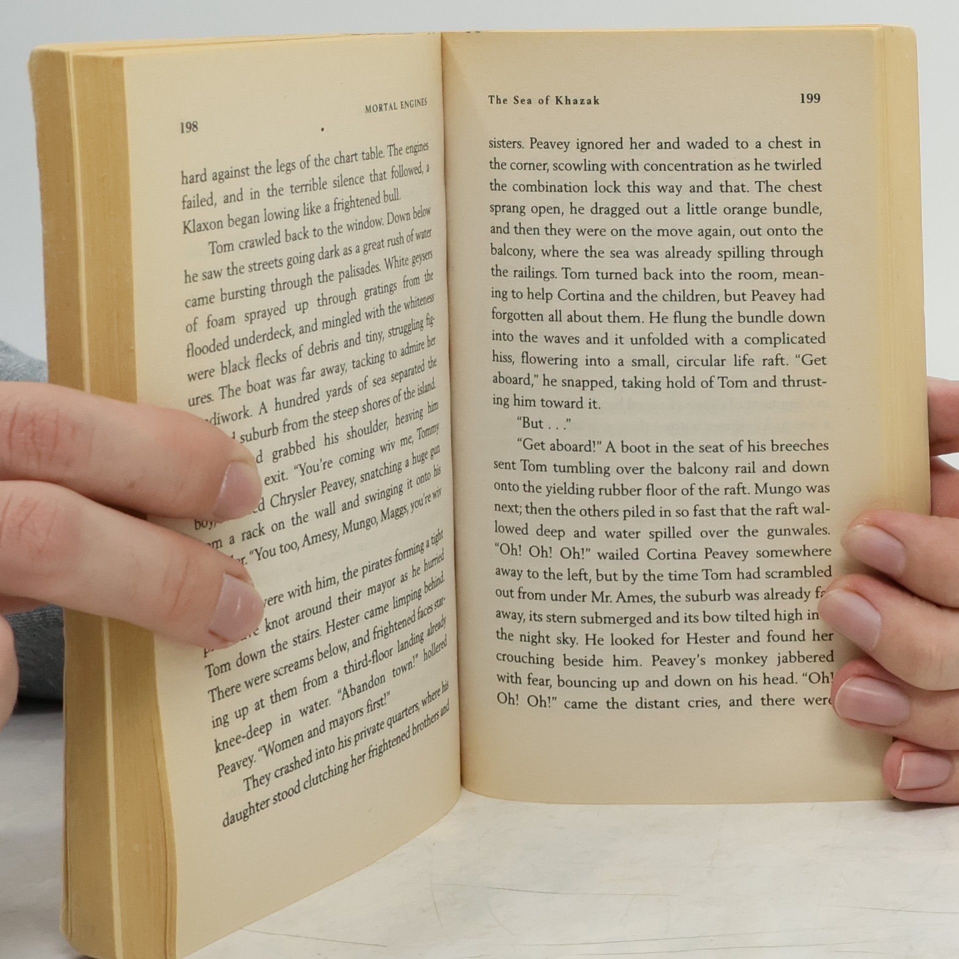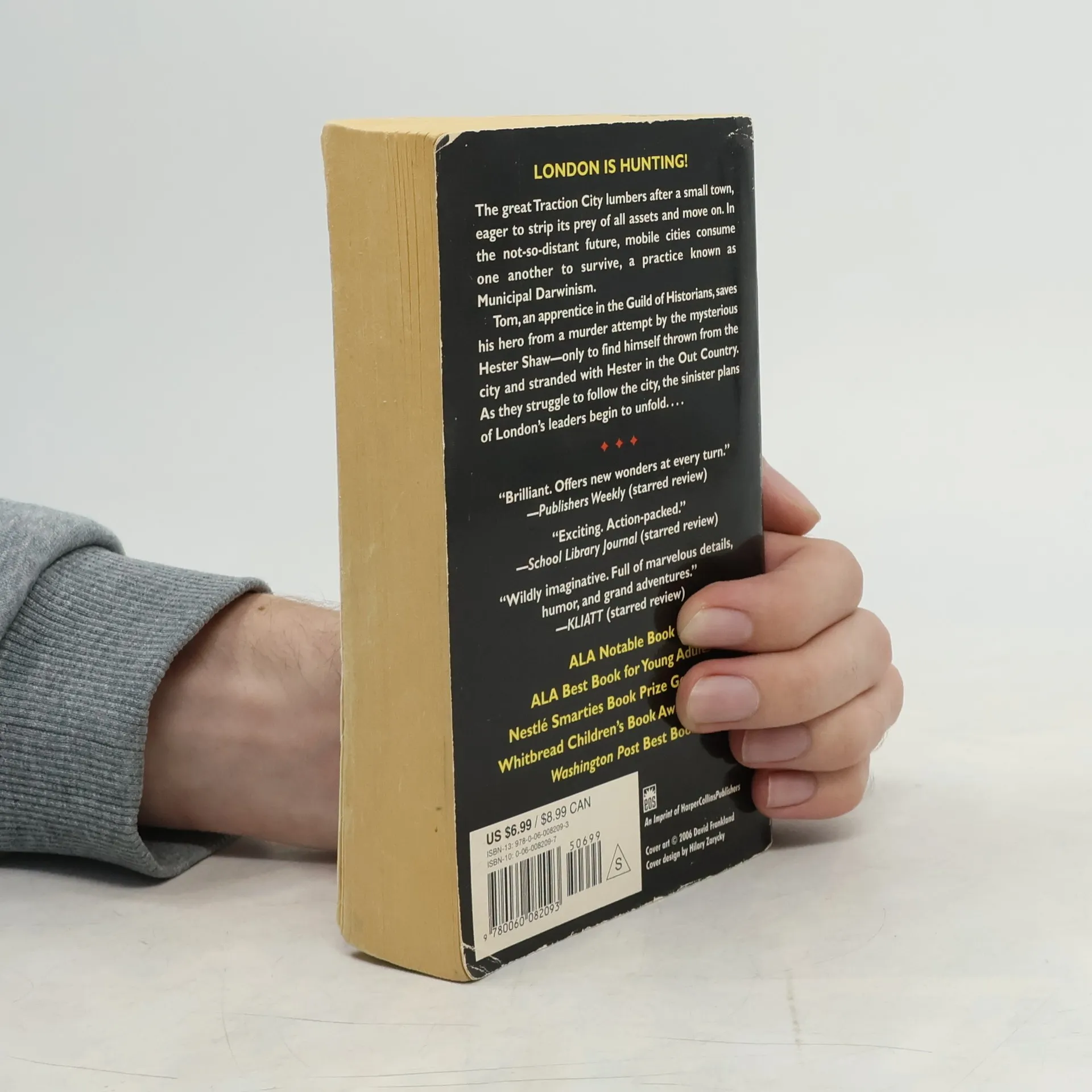 "It was a dark, blustery afternoon in spring, and the city of London was chasing a small mining town across the dried-out bed of the old North Sea."The great traction city London has been skulking in the hills to avoid the bigger, faster, hungrier cities loose in the Great Hunting Ground. But now, the sinister plans of Lord Mayor Mangus Crome can finally unfold.Thaddeus Valentine, London's Head Historian and adored famous archaeologist, and his lovely daughter, Katherine, are down in The Gut when the young assassin with the black scarf strikes toward his heart, saved by the quick intervention of Tom, a lowly third-class apprentice. Racing after the fleeing girl, Tom suddenly glimpses her hideous face: scarred from forehead to jaw, nose a smashed stump, a single eye glaring back at him. "Look at what your Valentine did to me!" she screams. "Ask him! Ask him what he did to Hester Shaw!" And with that she jumps down the waste chute to her death. Minutes later Tom finds himself tumbling down the same chute and stranded in the Out-Country, a sea of mud scored by the huge caterpillar tracks of cities like the one now steaming off over the horizon.In a stunning literary debut, Philip Reeve has created a painful dangerous unforgettable adventure story of surprises, set in a dark and utterly original world fueled by Municipal Darwinism -- and betrayal.