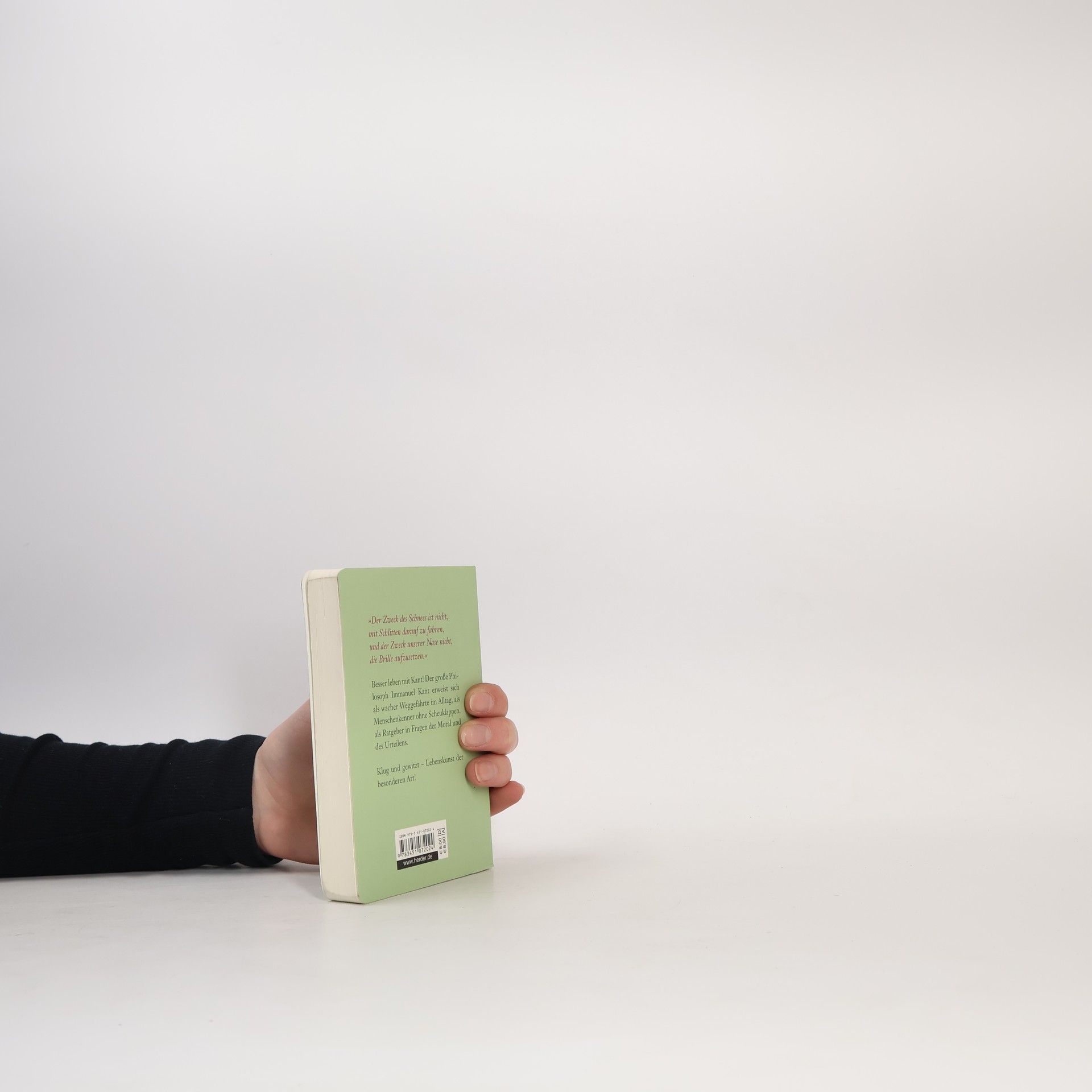 In diesem Band erscheint Immanuel Kant in neuem Licht: als verlässlicher Weggefährte durch die Fährnisse eines unvernünftigen Alltags. Als Menschenkenner ohne Scheuklappen. Als Ratgeber bei Fragen der Moral, des Anstands und des Urteilens. Und zaubert uns damit ein Lächeln auf die Lippen. „Der Zweck des Schnees ist nicht, mit Schlitten darauf zu fahren, und der Zweck unserer Nase nicht, die Brille aufzusetzen.“ (Immanuel Kant)