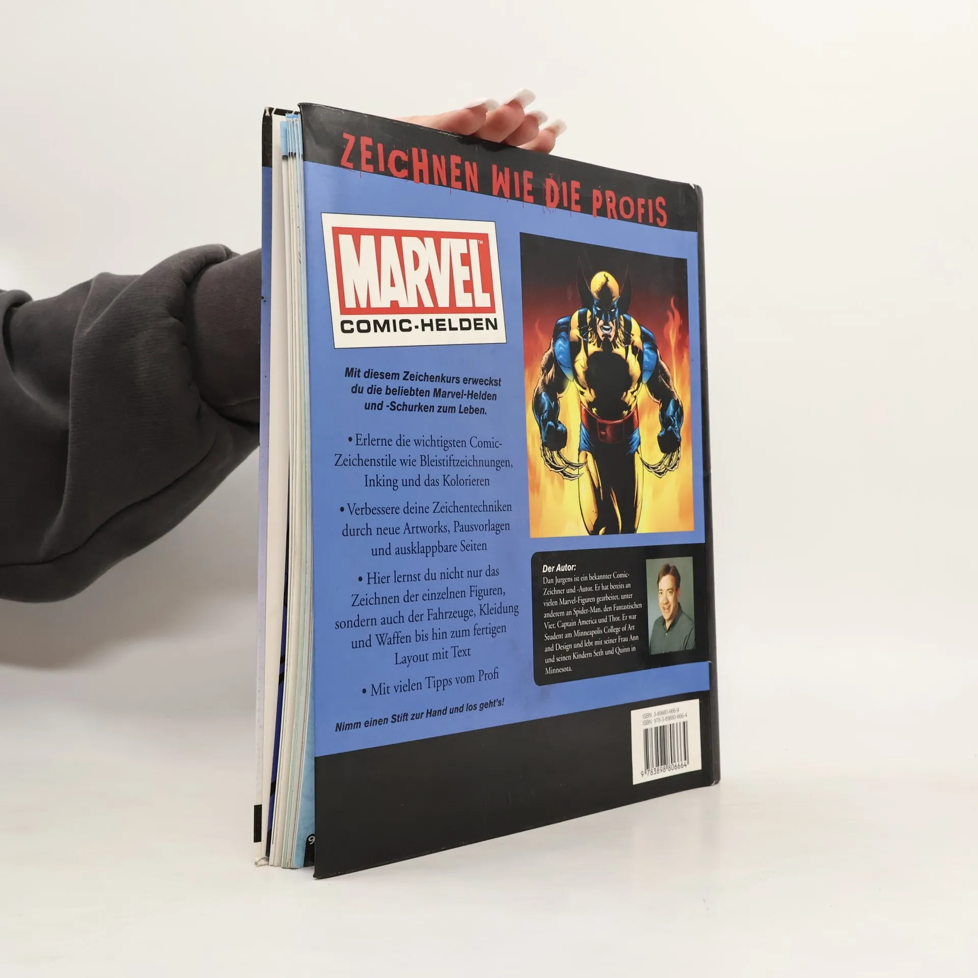 Sie lieben die Marvel-Helden? Jetzt können Sie die Figuren zeichnen wie die Profis. Seit den frühen 60er Jahren begeistern die Marvel-Comic-Helden die Fans. Unzählige Comicliebhaber tauchten ein in die Abenteuer von Spider-Man, Hulk, den X-Men, Captain America, Blade und vielen anderen Superhelden und Superschurken. Die erfolgreichen Kinoverfilmungen von „X-Men“, „Spider-Man“ etc. mit vielen Fortsetzungen sind Garant für volle Kinosäle. Der weltbekannte Marvelautor und –zeichner Dan Jurgens hat an vielen Charakteren mitgewirkt. Er führt den Leser kompetent durch diesen Zeichenkurs, der sich in die Kapitel Bleistift-Zeichnungen, Tuschen-Zeichnungen und Kolorierung unterteilt. Materklassen am Ende der Kapitel wiederholen das Gelernte und vertiefen die Kenntnisse. Pausvorlagen helfen bei der Zeichnung der detaillierten Figuren und Gegenstände, Waffen, Autos etc. Mit vielen Tipps vom Profi ein Muss für alle Comicfans.
