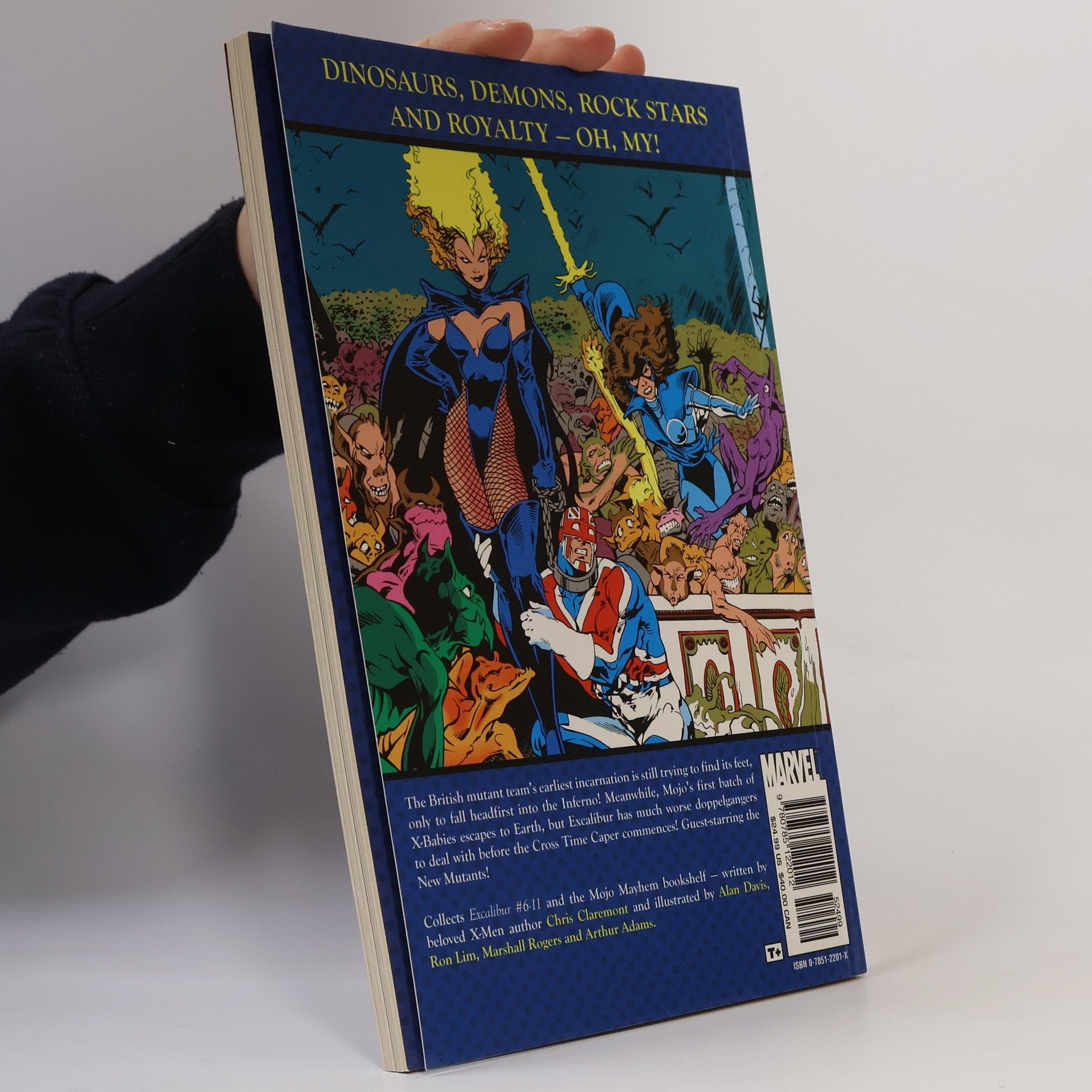 The British mutant team's earliest incarnation is still trying to find its feet, only to fall headfirst into the Inferno Meanwhile, Mojo's first batch of X-Babies escape to Earth, but Excalibur has much worse doppelgangers to deal with before the Cross Time Caper commences Guest-starring the New Mutants Featuring dinosaurs, demons, rock stars and royalty Collects Excalibur #6-11 & Excalibur: Mojo Mayhem