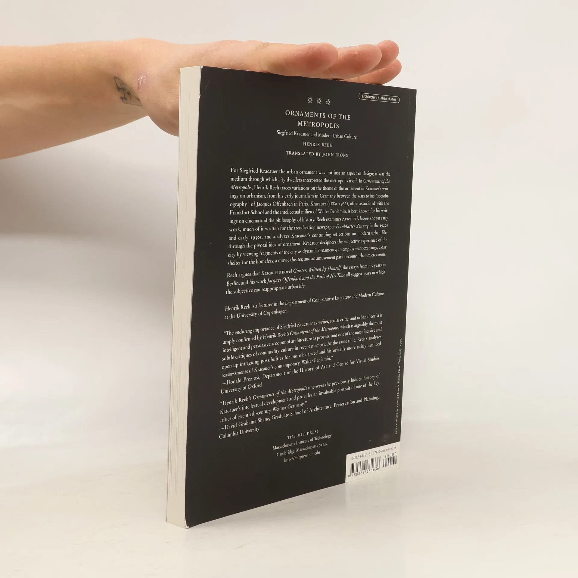 Variations on the theme of the ornament in Kracauer's urban writings, suggesting ways in which the subjective can reappropraite urban life. For Siegfried Kracauer, the urban ornament was not just an aspect of design; it was the medium through which city dwellers interpreted the metropolis itself. In Ornaments of the Metropolis , Henrik Reeh traces variations on the theme of the ornament in Kracauer's writings on urbanism, from his early journalism in Germany between the wars to his "sociobiography" of Jacques Offenbach in Paris. Kracauer (1889-1966), often associated with the Frankfurt School and the intellectual milieu of Walter Benjamin, is best known for his writings on cinema and the philosophy of history. Reeh examines Kracauer's lesser-known early work, much of it written for the trendsetting newspaper Frankfurter Zeitung in the 1920s and early 1930s, and analyzes Kracauer's continuing reflections on modern urban life, through the pivotal idea of ornament. Kracauer deciphers the subjective experience of the city by viewing fragments of the city as dynamic ornaments; an employment exchange, a day shelter for the homeless, a movie theater, and an amusement park become urban microcosms. Reeh focuses on three substantial works written by Kracauer before his emigration to the United States in 1940. In the early autobiographical novel Ginster, Written by Himself , a young architect finds aesthetic pleasure in the ornamental forms that are largely unused in the profession of the time. The collection Streets of Berlin and Elsewhere , with many essays from Kracauer's years in Berlin, documents the subjectiveness of urban life. Finally, Jacques Offenbach and the Paris of His Time shows how the superficial—in a sense, ornamental—milieu of the operetta evolved into a critical force during the Second Empire. Reeh argues that Kracauer's novel, essays, and historiography all suggest ways in which the subjective can reappropriate urban life. The book also includes a series of photographs by the author that reflect the ornamental experience of the metropolis in Paris, Frankfurt, and other cities.