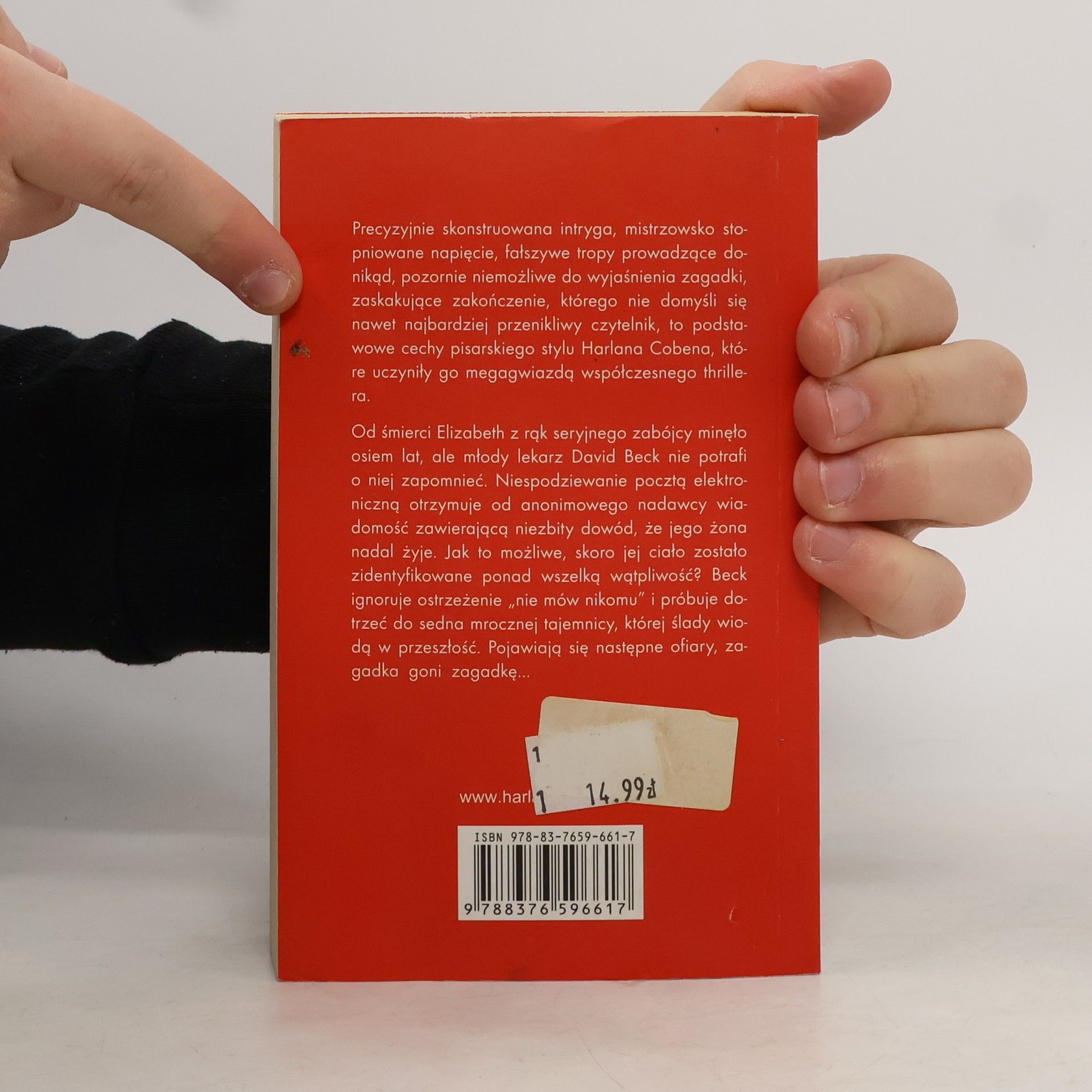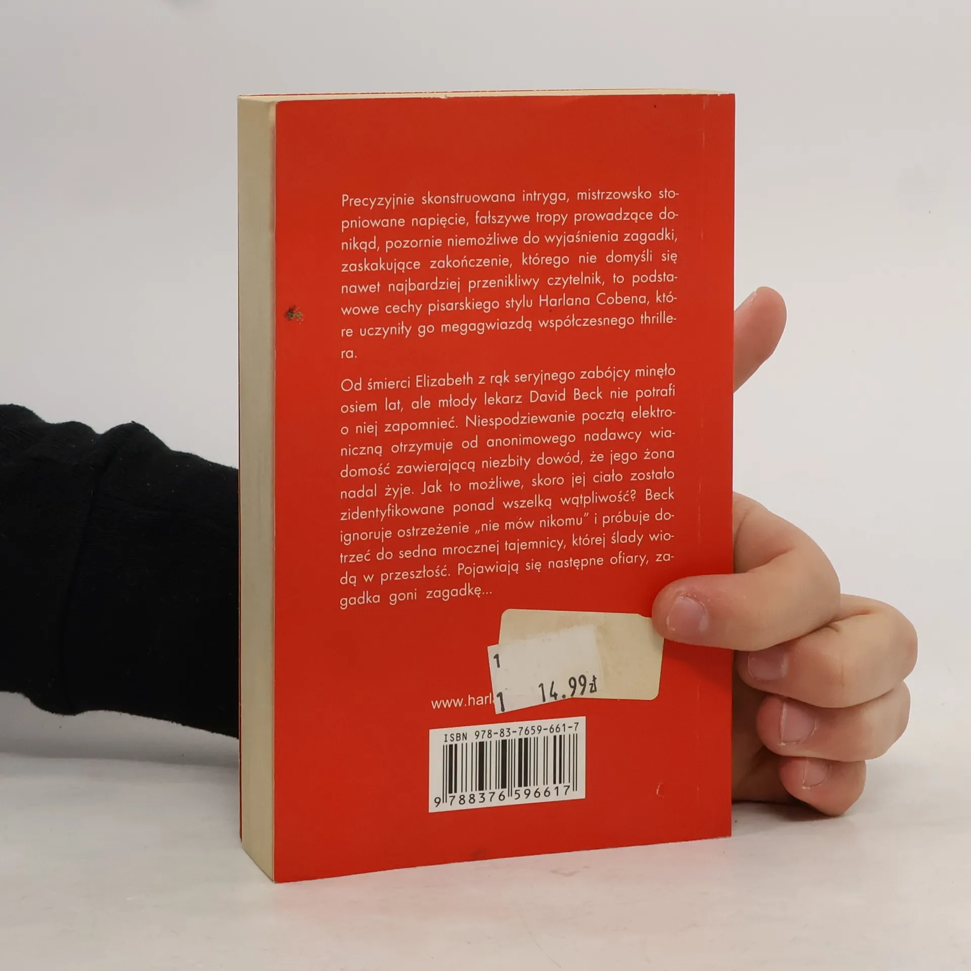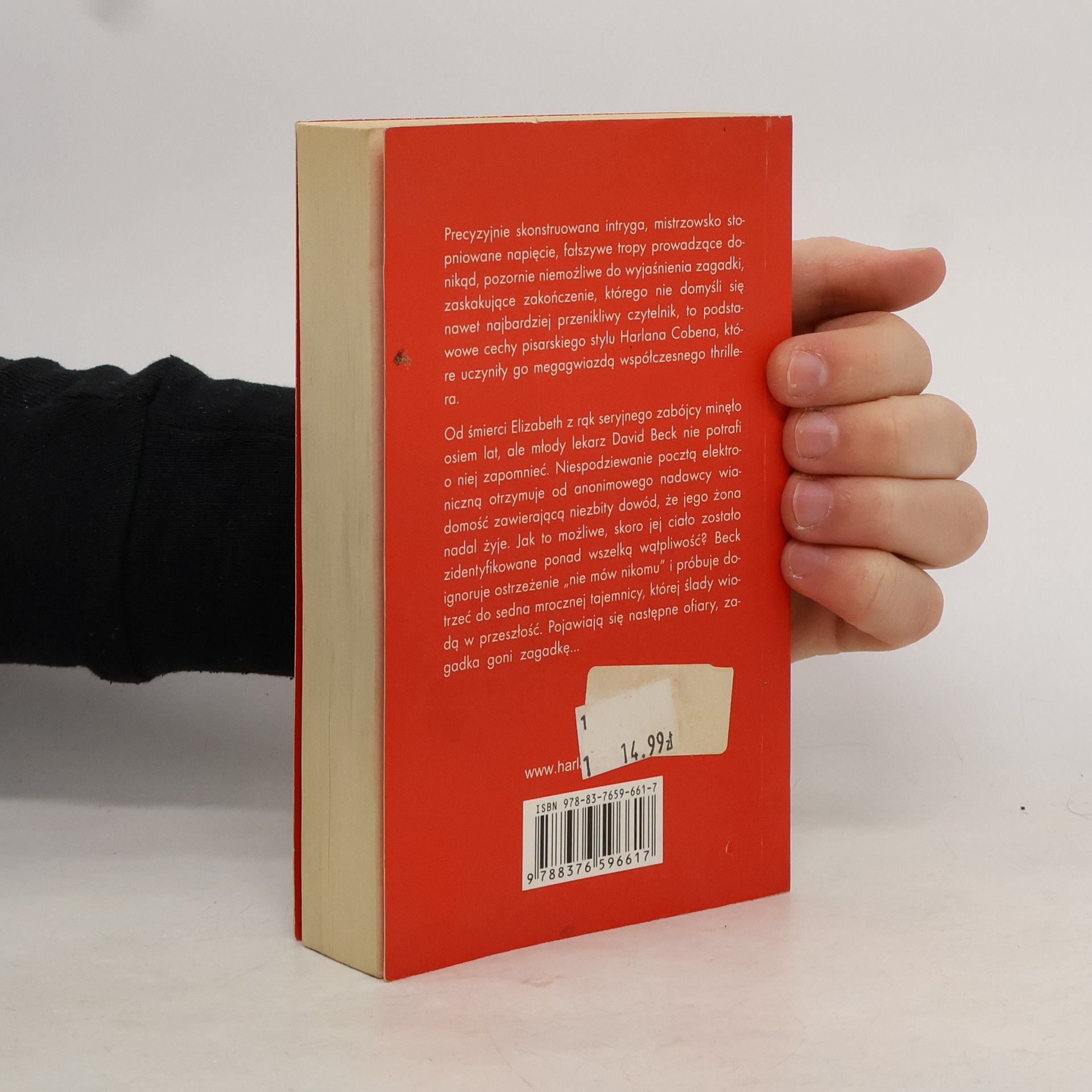 Od śmierci Elizabeth z rąk seryjnego zabójcy minęło osiem lat, ale młody lekarz David Beck nie potrafi o niej zapomnieć. Niespodziewanie pocztą elektroniczną otrzymuje niezbity dowód, że jego żona nadal żyje. Jak to możliwe, skoro jej ciało zostało zidentyfikowane ponad wszelką wątpliwość? Beck ignoruje ostrzeżenie ’nie mów nikomu’ i próbuje dotrzeć do sedna mrocznej tajemnicy, której ślady wiodą w przeszłość. Padają następne ofiary, zagadka goni zagadkę…