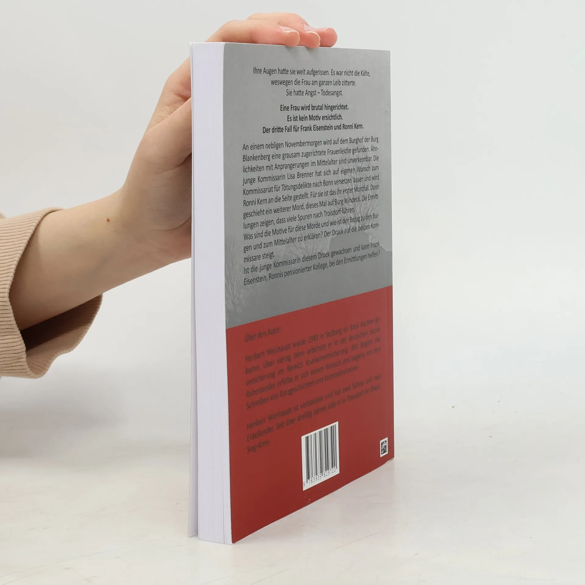 Ihre Augen hatte sie weit aufgerissen. Es war nicht die Kälte, weswegen die Frau am ganzen Leib zitterte. Sie hatte Angst – Todesangst. Eine Frau wird brutal hingerichtet. Es ist kein Motiv ersichtlich. Der dritte Fall für Frank Eisenstein und Ronni Kern. An einem nebligen Novembermorgen wird auf dem Burghof der Burg Blankenberg eine grausam zugerichtete Frauenleiche gefunden. Ähnlichkeiten mit Anprangerungen im Mittelalter sind unverkennbar. Die junge Kommissarin Lisa Brenner hat sich auf eigenen Wunsch zum Kommissariat für Tötungsdelikte nach Bonn versetzen lassen und wird Ronni Kern an die Seite gestellt. Für sie ist das ihr erster Mordfall. Dann geschieht ein weiterer Mord, dieses Mal auf Burg Windeck. Die Ermittlungen zeigen, dass viele Spuren nach Troisdorf führen. Was sind die Motive für diese Morde und wie ist der Bezug zu den Burgen und zum Mittelalter zu erklären? Der Druck auf die beiden Kommissare steigt. Ist die junge Kommissarin diesem Druck gewachsen und kann Frank Eisenstein, Ronnis pensionierter Kollege, bei den Ermittlungen helfen?
