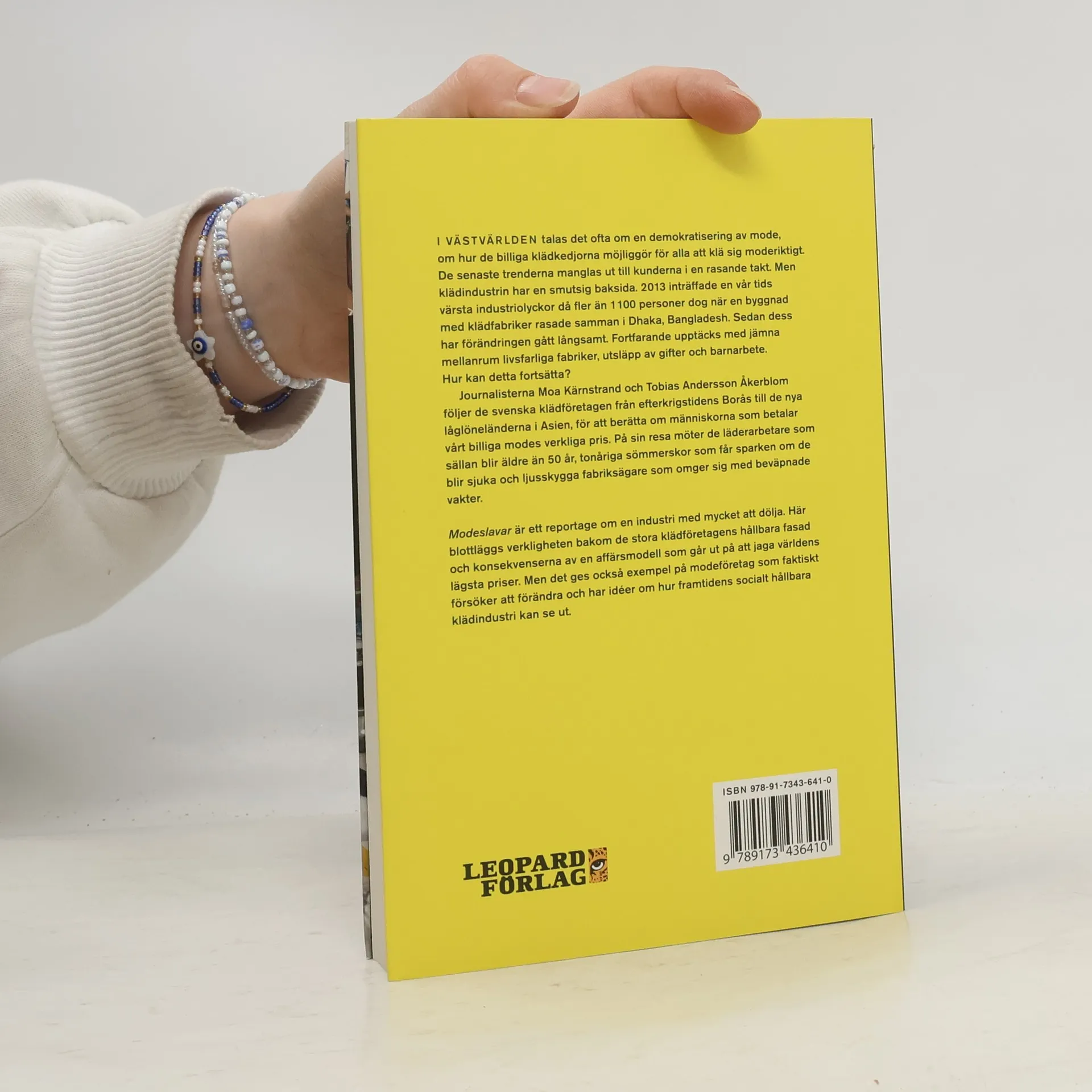 I västvärlden diskuteras ofta en demokratisering av mode, där billiga klädkedjor gör det möjligt för alla att klä sig moderiktigt. Men klädindustrin har en mörk baksida. Den tragiska olyckan i Dhaka 2013, där 1129 personer dog när en byggnad med klädfabriker kollapsade, avslöjar en långsam förändring. Livsfarliga fabriker, dödliga kemikalier och barnarbete upptäckts fortfarande. Journalisterna Moa Kärnstrand och Tobias Andersson Åkerblom undersöker de svenska klädföretagens historia, från efterkrigstidens Borås till låglöneländer i Asien, och belyser människorna som betalar det verkliga priset för vårt billiga mode. De möter läderarbetare i Bangladesh som sällan blir äldre än 50 år, tonåriga sömmerskor i Burma som riskerar att bli avskedade vid sjukdom, och fabriksägare som omger sig med beväpnade vakter. Genom att blottlägga verkligheten bakom klädföretagens hållbara fasad, visar de konsekvenserna av en affärsmodell som jagar de lägsta priserna. Samtidigt presenteras exempel på företag som strävar efter förändring och visioner för en hållbar klädindustri. "Tacka himlen för att det ännu finns journalister som är envisa nog att rota fram dessa sanningar." - Gefle Dagblad. "Modeslavar är en viktig bok." - Arbetet Global. "De har gjort en gedigen granskning." - Aftonbladet.