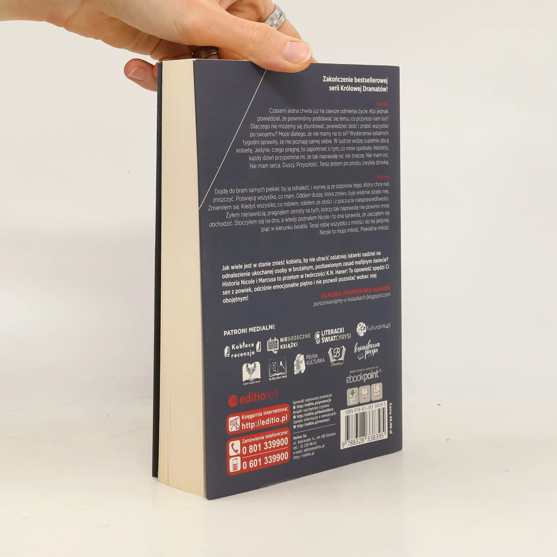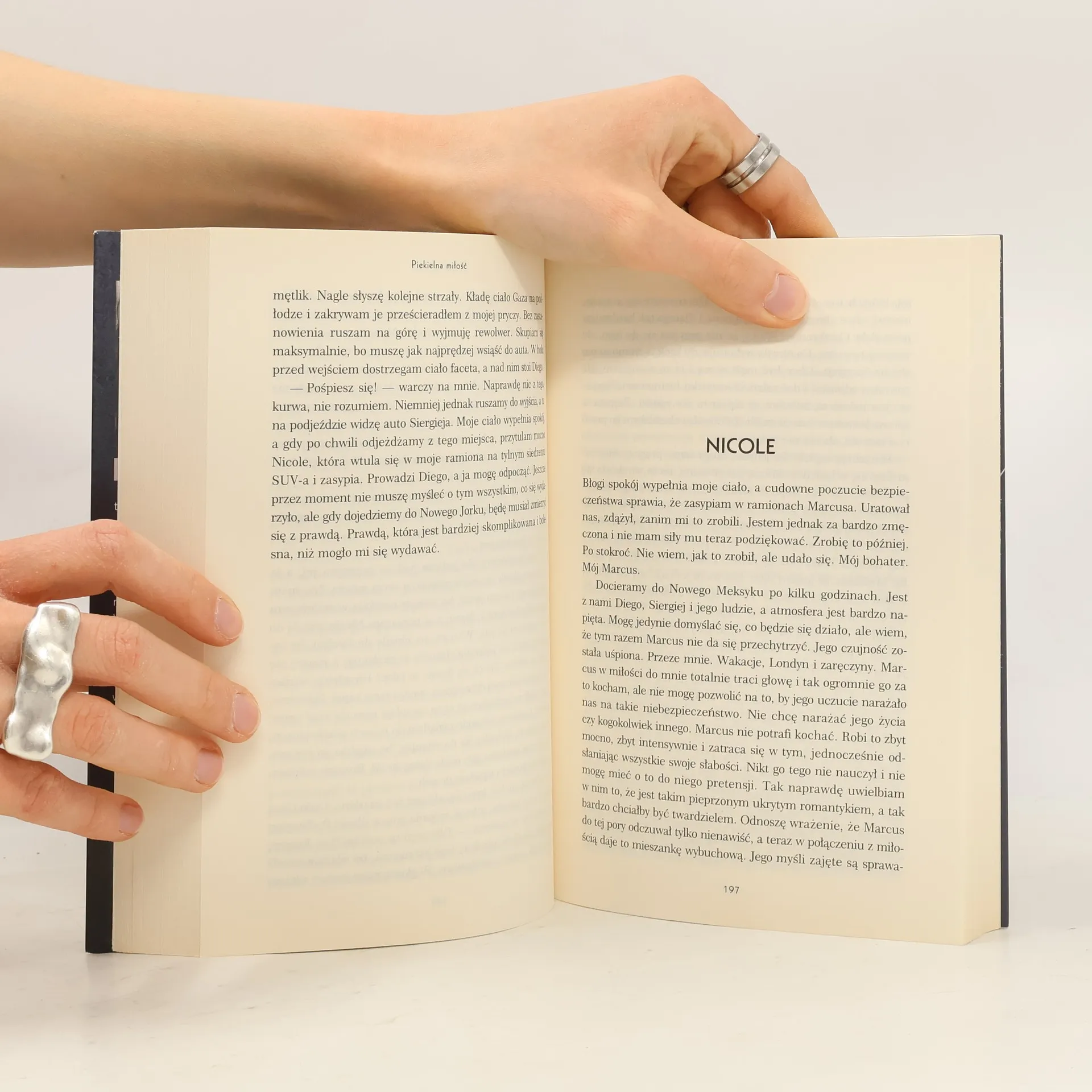 NicoleCzasami jedna chwila już na zawsze odmienia nasze życie. Kto powiedział jednak, że powinniśmy poddawać się temu, co przynosi nam los? Dlaczego nie możemy się zbuntować, powiedzieć dość i zrobić wszystko po swojemu? Może dlatego, że nie mamy na to sił?Wydarzenia ostatnich tygodni sprawiły, że nie poznaję samej siebie. W lustrze widzę zupełnie obcą kobietę. Jedynie czego pragnę, to zapomnieć o tym, co mnie spotkało. Niestety każdy dzień przypomina mi, że tak naprawdę nic nie znaczę. Nie mam nic. Nie mam serca. Duszy. Przyszłości. Teraz jestem przecież po prostu zwykłą dziwką.Marcus Dojdę do samych bram piekieł, by ją odnaleźć, i wyrwę ją ze szponów tego, który chce nas zniszczyć. Poświęcę wszystko, co mam. Oddam duszę, która znowu żyje właśnie dzięki niej.Zmieniłem się. Kiedyś wszystko, co robiłem, robiłem ze złości i poczucia niesprawiedliwości. Żyłem nienawiścią, pragnąłem zemsty na tych, którzy tak naprawdę nie powinni mnie obchodzić. Dobiłem do dna, a wtedy poznałem Nicole i to ona sprawiła, że zacząłem piąć się w kierunku światła. Teraz robię wszystko z miłości do tej jedynej. Nicole to moja miłość. Piekielna miłość.Zakazany układ złamał Ci serce? Przygotuj się na Piekielną miłość!