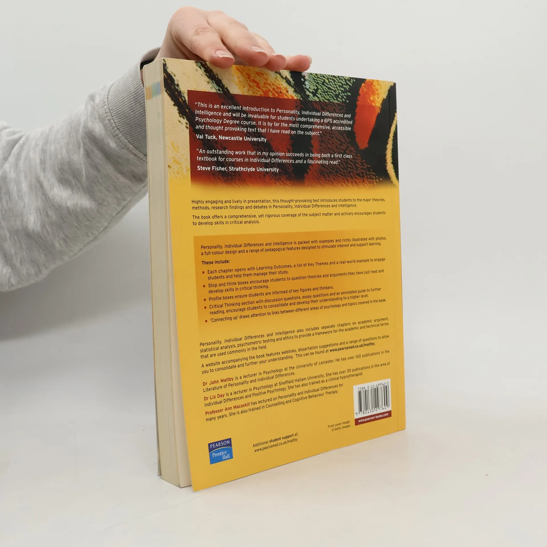 This introduction to Personality, Intelligence, and Individual Differences is an invaluable resource for students pursuing a BPS accredited Psychology Degree. It stands out as a comprehensive, accessible, and thought-provoking text. The engaging presentation introduces major theories, methods, research findings, and debates in the field, encouraging critical analysis skills. The book is filled with examples and illustrations, featuring pedagogical tools such as learning outcomes, key themes, and real-world examples at the start of each chapter. "Stop and Think" boxes prompt reflection, while profile boxes highlight key figures. Critical Thinking boxes challenge students to question theories, and discussion and essay questions help deepen understanding. The "Connecting Up" feature links various psychology topics. Additionally, separate chapters on Academic Argument, Statistical Analysis, Psychometric Testing, and ethics provide a framework for commonly used academic and technical terms. An accompanying website offers weblinks, dissertation suggestions, and questions for further learning. Dr. John Maltby, Dr. Liz Day, and Professor Ann Macaskill, all experienced lecturers in psychology, contribute their expertise to this essential text.