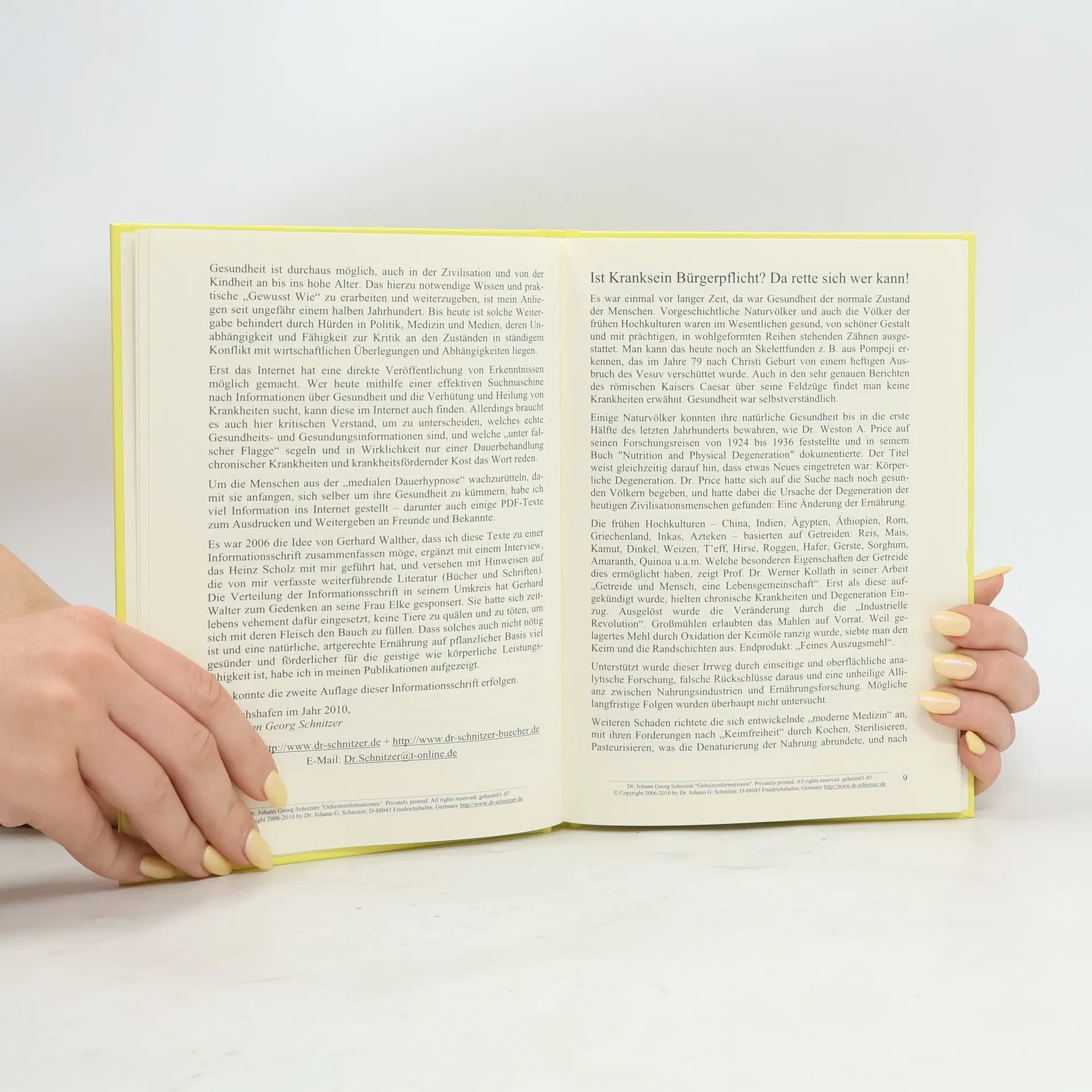Geheiminformationen, die in den Mainstream-Medien nicht zu finden sind, zur Erhaltung der Gesundheit, zur Heilung chronischer Krankheiten ohne Pillen und ohne Nebenwirkungen und zur Krankheit des Gesundheitssystems, Johann Georg Schnitzer