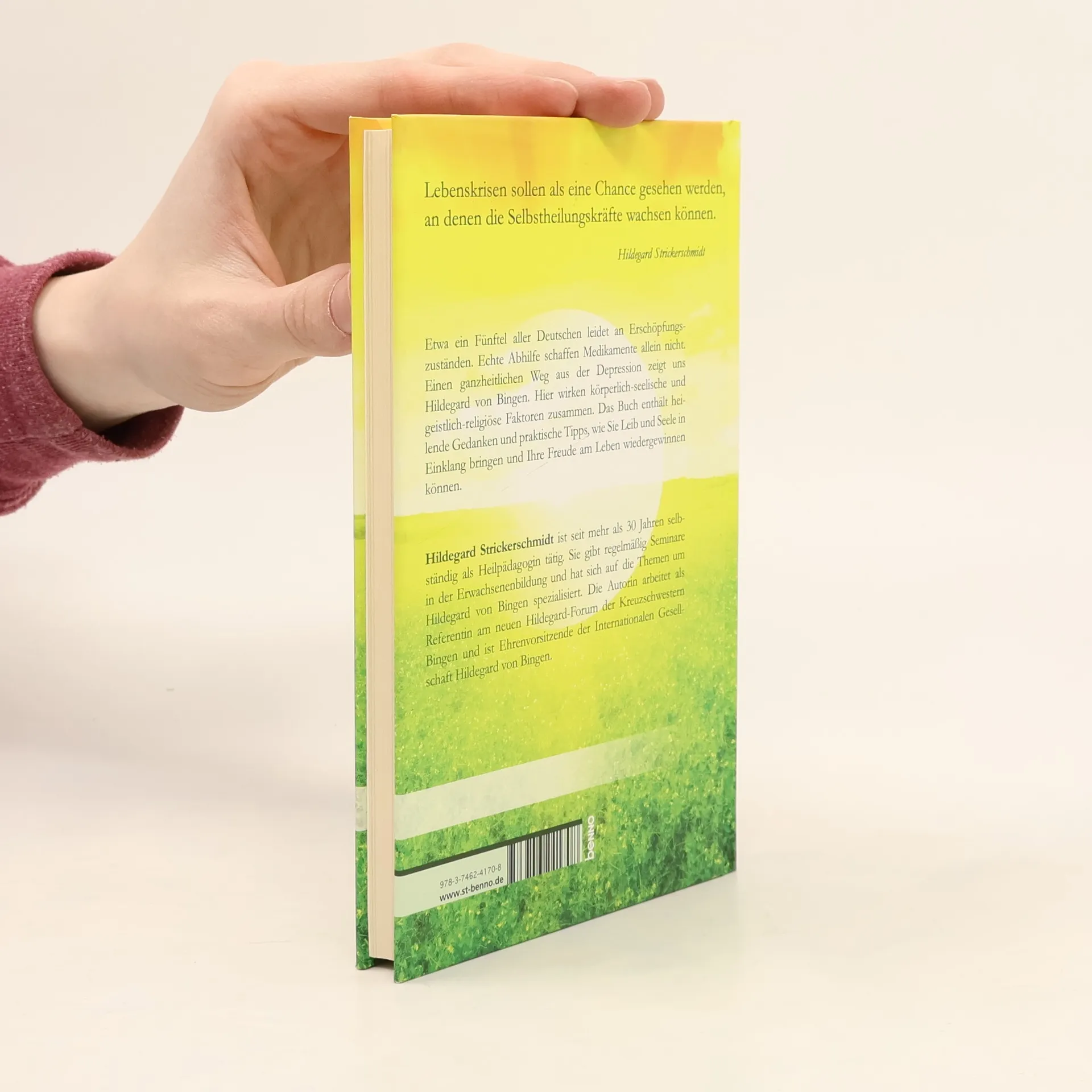 Etwa ein Fünftel aller Deutschen leidet an Erschöpfungszuständen. Echte Abhilfe schaffen Medikamente allein nicht. Einen ganzheitlichen Weg aus der Depression zeigt uns Hildegard von Bingen. Hier wirken körperlich-seelische und geistig-religiöse Faktoren zusammen. Das Buch enthält heilende Gedanken und praktische Tipps, wie Sie Leib und Seele in Einklang bringen und Ihre Freude am Leben wiedergewinnen können.