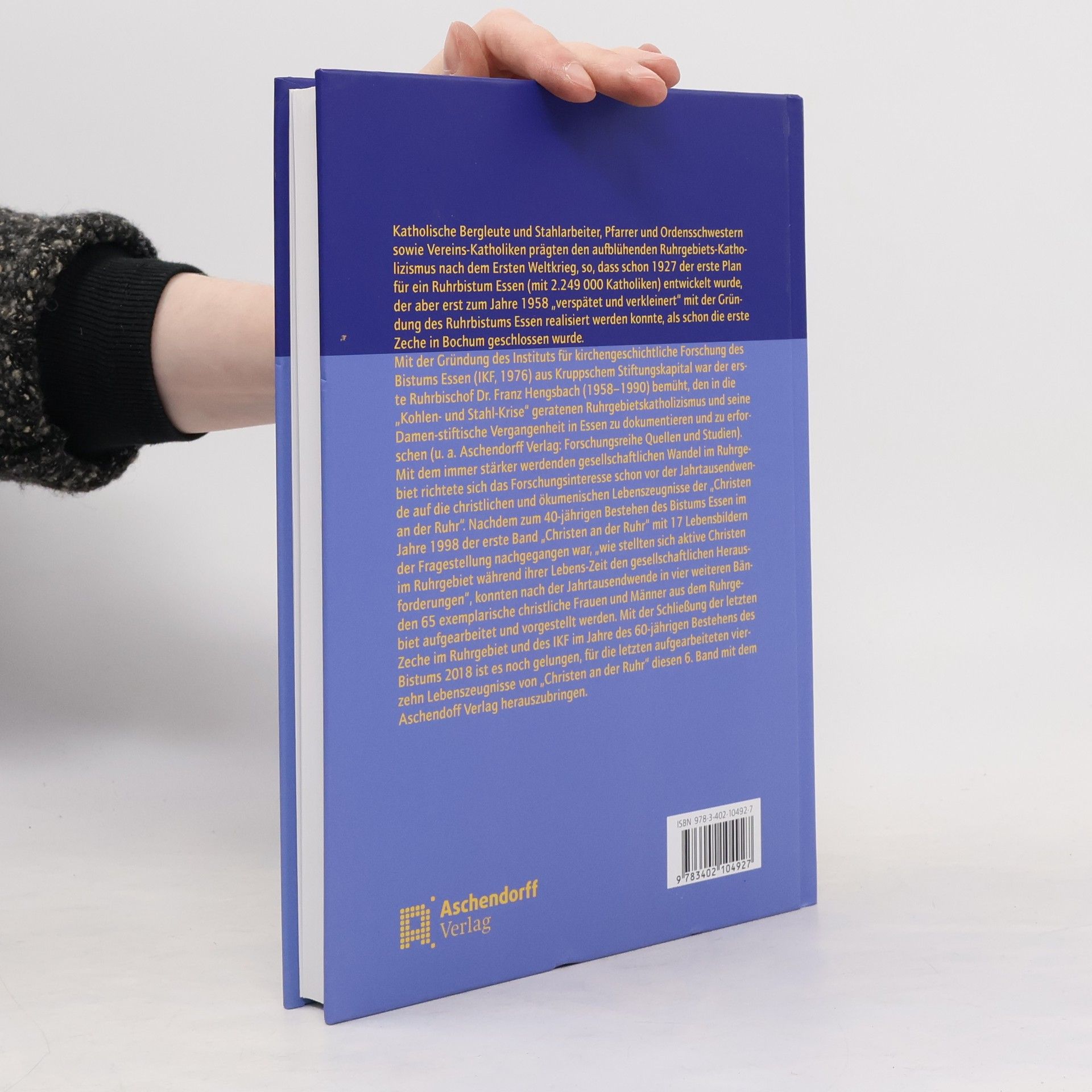 Nach dem Ersten Weltkrieg prägten katholische Bergleute, Stahlarbeiter, Pfarrer und Ordensschwestern den aufblühenden Katholizismus im Ruhrgebiet. Bereits 1927 wurde der erste Plan für ein Ruhrbistum Essen mit 2.249.000 Katholiken entwickelt, dessen Gründung jedoch erst 1958, verzögert und verkleinert, realisiert wurde, als die erste Zeche in Bochum schloss. Der erste Ruhrbischof Dr. Franz Hengsbach (1958-1990) gründete 1976 das Institut für kirchengeschichtliche Forschung des Bistums Essen (IKF) mit Kruppschem Stiftungskapital, um die Geschichte des Ruhrgebietskatholizismus und seine damenstiftische Vergangenheit zu dokumentieren. Mit dem gesellschaftlichen Wandel richtete sich das Forschungsinteresse vor der Jahrtausendwende auf die christlichen und ökumenischen Lebenszeugnisse der „Christen an der Ruhr“. Anlässlich des 40-jährigen Bestehens des Bistums Essen erschien 1998 der erste Band „Christen an der Ruhr“, der 17 Lebensbilder aktiver Christen im Ruhrgebiet vorstellte. In vier weiteren Bänden nach der Jahrtausendwende wurden 65 exemplarische christliche Frauen und Männer behandelt. Mit der Schließung der letzten Zeche und des IKF im Jahr 2018, dem 60-jährigen Bestehen des Bistums, wurde der 6. Band mit 14 weiteren Lebenszeugnissen herausgebracht.