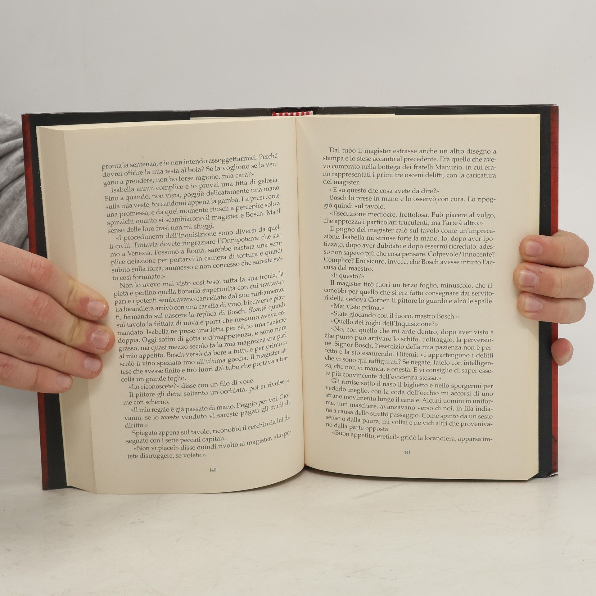 E se il pittore Bosch fosse stato uno stregone che parlava delle opere di Dio per confondermi? E se Isabella fosse stata sua complice, e non una vittima dei suoi incantamenti? Giovanni Ciocchi, un giovane di poco più di quindici anni, si trova all'inizio del Cinquecento in viaggio verso Venezia con l'inquisitore Martino da Barga, suo mentore. Sono convocati per partecipare al processo contro Hieronymus Bosch, accusato di eresia per aver dipinto un Cristo in croce con fattezze femminili. Mentre Giovanni e Martino incontrano il pittore e la sua visione del mondo, la città è scossa da macabri delitti. Sei cadaveri vengono ritrovati, ognuno con segnali da decifrare: monete nei bulbi oculari, frutti e salsicce accanto ai corpi, e piume d'uccello che spuntano dalle tasche e dalle bocche delle vittime, come firme di un autore. La città conta sul fiuto del magister, noto investigatore, per interpretare le tracce dell'omicida e risolvere l'enigma. Il principale indiziato è proprio il controverso Hieronymus Bosch, il cui destino è legato a quello di Giovanni e Martino in un intreccio di arte, mistero e verità.