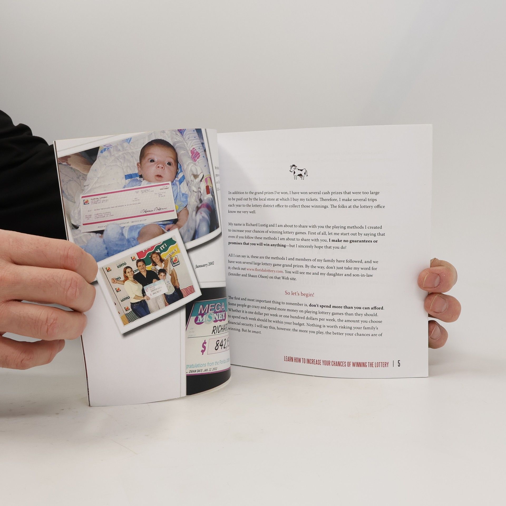 In his book, Richard discusses the ins and outs and dos and don'ts of buying lottery tickets to increase your chances of winning. He has created a method that he and members of his family use that has enabled them to WIN several lottery game GRAND prizes. This is a very easy to use method and will work with any type lottery games (scratch tickets or number games) in any state or country. Here are some quotes from people who have used his method: "My husband and I used Richard Lustig's lotto method and within months of starting the method we hit a Mega Money jackpot for 2 million dollars! It was really easy to follow. You only play what you can and you can still win! Shaun and I will only play lotto from now on using these strategies." -Jennifer and Shaun, Florida "Since we've been using your method, we have definitely been winning more that we used to. It's easy to follow" -Dale, Florida "I just wanted to let you know that my husband and I read through your lottery method last night. It seems great. It seems to be just simple logic and makes sense." -Kate, Illinois