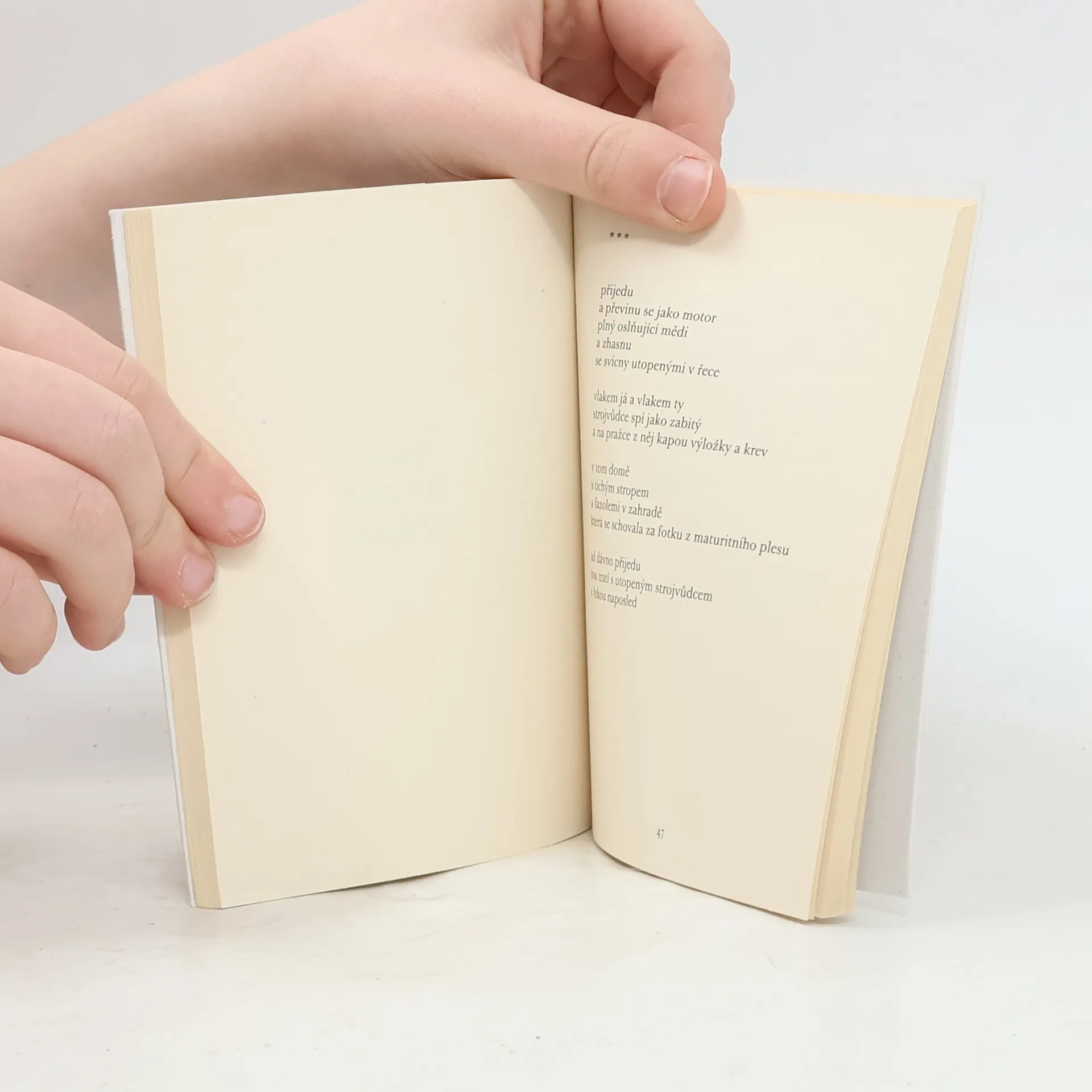 Autorský výbor básníka Petra Motýla sestavený z rukopisů z let 2009 až 2012 a vydaný u příležitosti autorových 50. narozenin. Básně jsou předznačeny jadrným jazykem, vybroušeným a cizelovaným do čistého, prostého tvaru. Čiší z nich především radost ze samotného psaní. Motýlovy historky z periferie a jejích špeluněk vykukují na čtenáře pouze občas a vzdáleně. Spíš tu jde o ztišení, usebrání, zklidnění, „melancholickou procházku“ po krajině vnější, převážně pražské, ale i krajině vnitřní, v níž zpoza ostře prosvětlených situací tu a tam vykukují světy „schované tmou“ či „příkrovem hlíny“