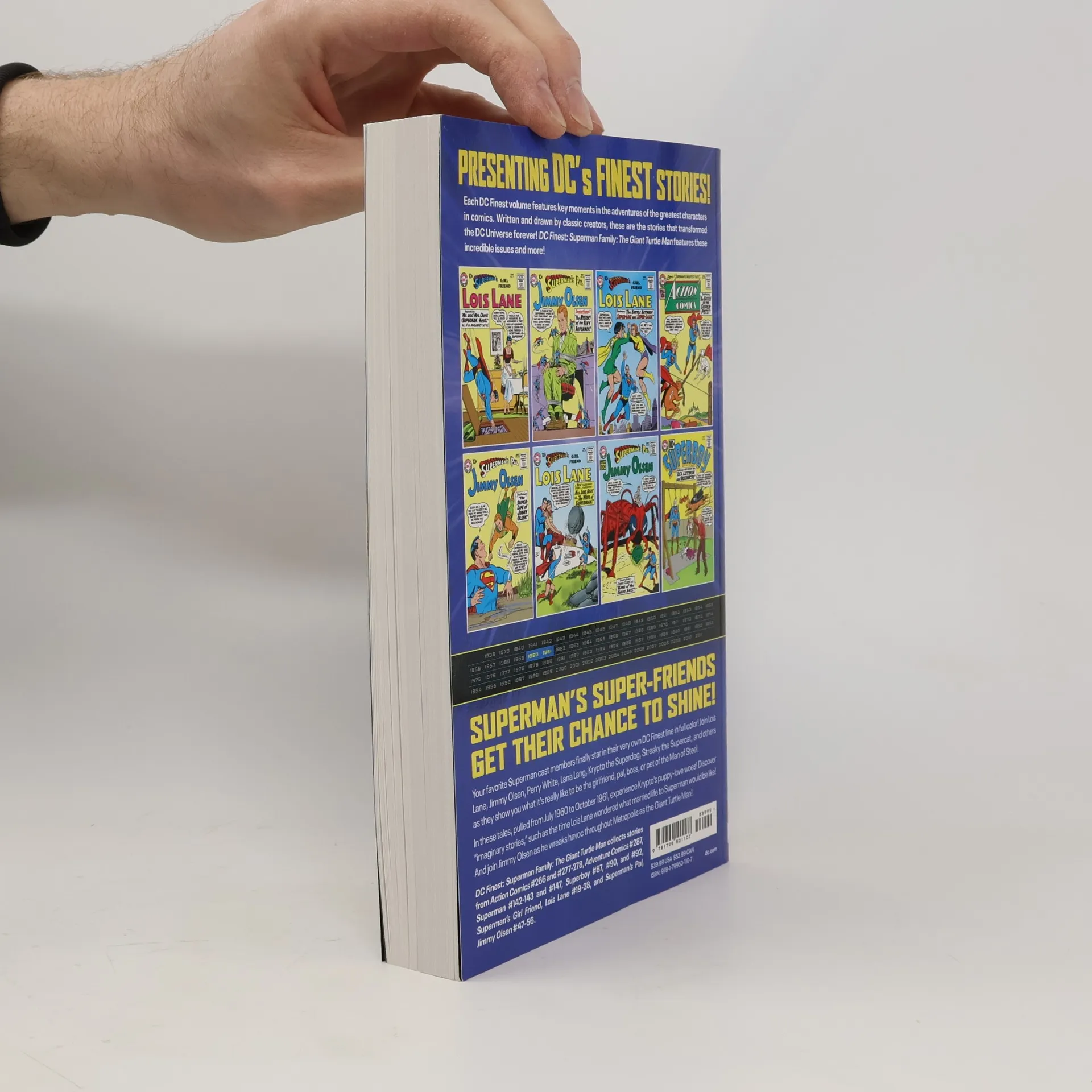 Superman’s best pal, Jimmy Olsen, has certainly been through a lot over the years but nothing quite compares to this! This brand new volume of DC Finest compiles some of Superman, Lois, and Jimmy’s wackiest and wildest Silver Age adventures, including the debut of the infamous Giant Turtle Man!All your favorite Superman Family members finally get their chance to shine in their very own DC Finest line in full color! Join Lois Lane, Jimmy Olsen, Perry White, Lana Lang, Streaky the Supercat, Krypto the Superdog, and more in these lighthearted tales that showcase what it’s really like to be the girlfriend, pal, boss, or pet of the Man of Steel. Collects stories from July 1960 to October 1961 originally published in Superman’s Girl Friend, Lois Lane #19-28, Superman’s Pal, Jimmy Olsen #47-56, Action Comics #266 and #277, and Superman #142-143 and #147.