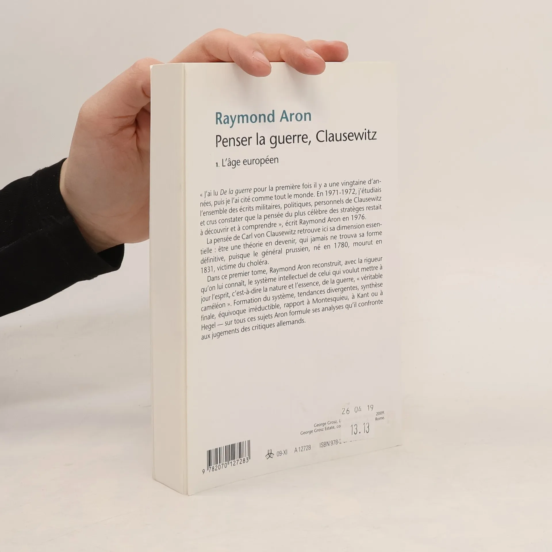 " J'ai lu De la guerre pour la première fois il y a une vingtaine d'années, puis je l'ai cité comme tout le monde. En 1971-1972, j'étudiais l'ensemble des écrits militaires, politiques, personnels de Clausewitz et crus constater que la pensée du plus célèbre des stratèges restait à découvrir et à comprendre ", écrit Raymond Aron en 1976. La pensée de Carl von Clausewitz retrouve ici sa dimension essentielle : être une théorie en devenir, qui jamais ne trouva sa forme définitive, puisque le général prussien, né en 1780, mourut en 1831, victime du choléra. Dans ce premier tome, Raymond Aron reconstruit, avec la rigueur qu'on lui connaît, le système intellectuel de celui qui voulut mettre à jour l'esprit, c'est-à-dire la nature et l'essence, de la guerre, " véritable caméléon ". Formation du système, tendances divergentes, synthèse finale, équivoque irréductible, rapport à Montesquieu, à Kant ou à Hegel - sur tous ces sujets Aron formule ses analyses qu'il confronte aux jugements des critiques allemands.