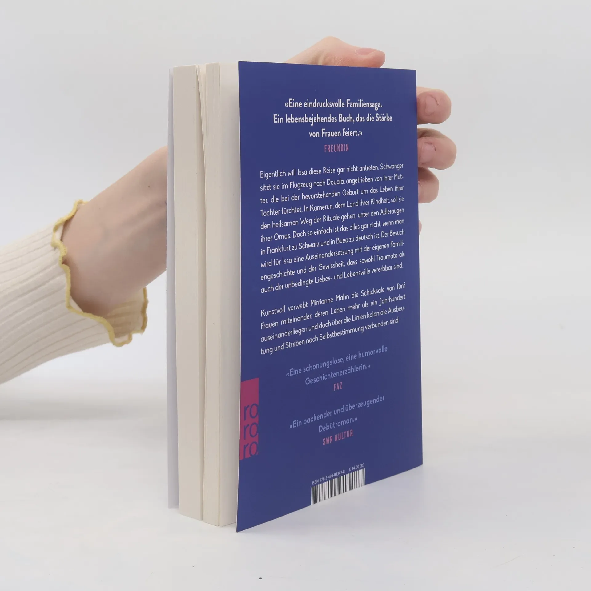 «Ich kenne ihre Geschichten so gut, dass ich manchmal glaube, ich hätte sie selbst erlebt.» Eigentlich will Issa diese Reise gar nicht antreten. Schwanger sitzt sie im Flugzeug nach Douala, angetrieben von ihrer Mutter, die bei der bevorstehenden Geburt um das Leben ihrer Tochter fürchtet. In Kamerun, dem Land ihrer Kindheit, soll sie den heilsamen Weg der Rituale gehen, unter den Adleraugen ihrer Omas. Doch so einfach ist das alles gar nicht, wenn man in Frankfurt zu schwarz und in Buea zu deutsch ist. Der Besuch wird für Issa eine Auseinandersetzung mit der eigenen Familiengeschichte und der Gewissheit, dass sowohl Traumata als auch der unbedingte Liebes- und Lebenswille vererbbar sind. Kunstvoll verwebt Mirrianne Mahn die Schicksale von fünf Frauen miteinander, deren Leben mehr als ein Jahrhundert auseinanderliegen und doch über die Linien kolonialer Ausbeutung und Streben nach Selbstbestimmung verbunden sind. Ein empowerndes, ein kraftvolles, ein eindringliches Debüt.