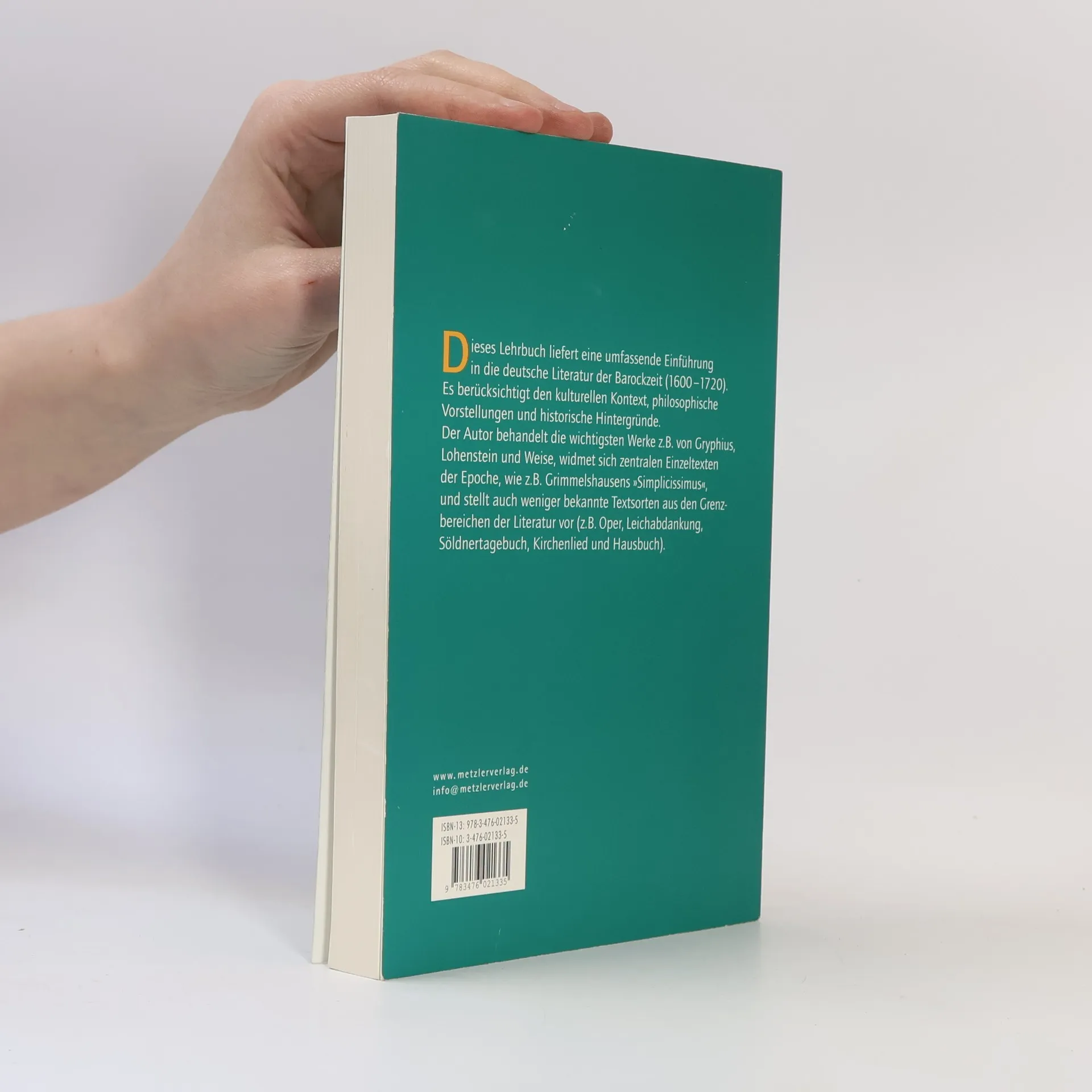 Grundlagen- und Examenswissen in einem Band. Das erfolgreiche Lehrbuch führt gut strukturiert in die deutschsprachige Barockliteratur ein. Vor dem Hintergrund von Kultur, Geschichte und Philosophie analysiert der Autor Werke u. a. von Gryphius und Lohenstein und stellt herausragende Texte, wie z. B. Grimmelshausens 'Simplicissimus', vor. Ebenfalls im Fokus: Opern, Söldnertagebücher, Kirchenlieder und andere Textsorten. An vielen Hochschulen im Einsatz.