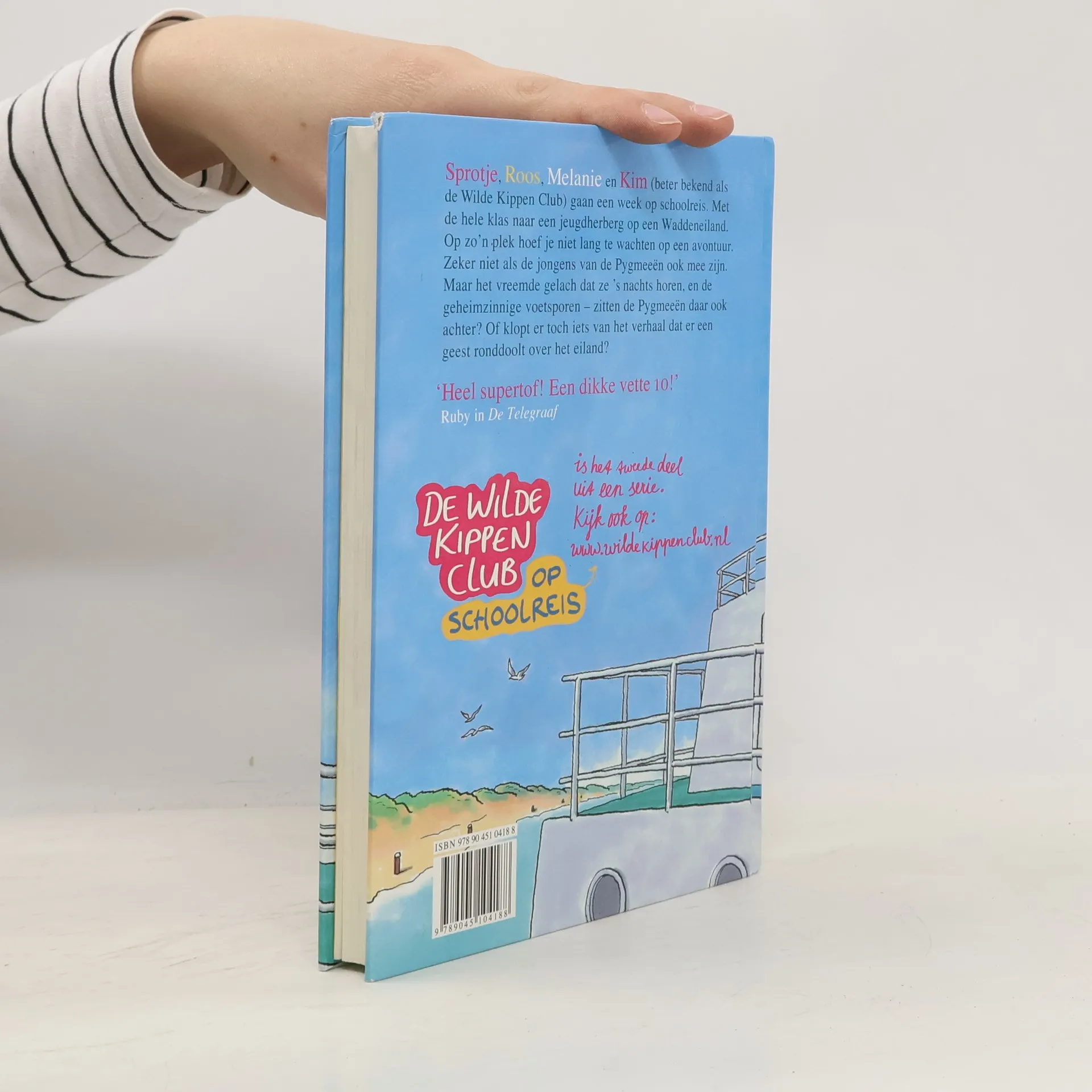Sprotje, Roos, Melanie en Kim (beter bekend als de Wilde Kippen Club) gaan een week op schoolreis. Met de hele klas naar een jeugdherberg op een Waddeneiland. Op zo"n plek hoef je niet lang te wachten op een avontuur. Zeker niet als de jongens van de Pygmeeen ook mee zijn. Maar het vreemde gelach dat ze "s nachts horen, en de geheimzinnige voetsporen - zitten de Pygmeeen daar ook achter? Of klopt er toch iets van het verhaal dat er een geest ronddoolt over het eiland? De Wilde Kippen Club op schooreis is het tweede deel uit een serie. Kijk ook op: www.wildekippenclub.nl .