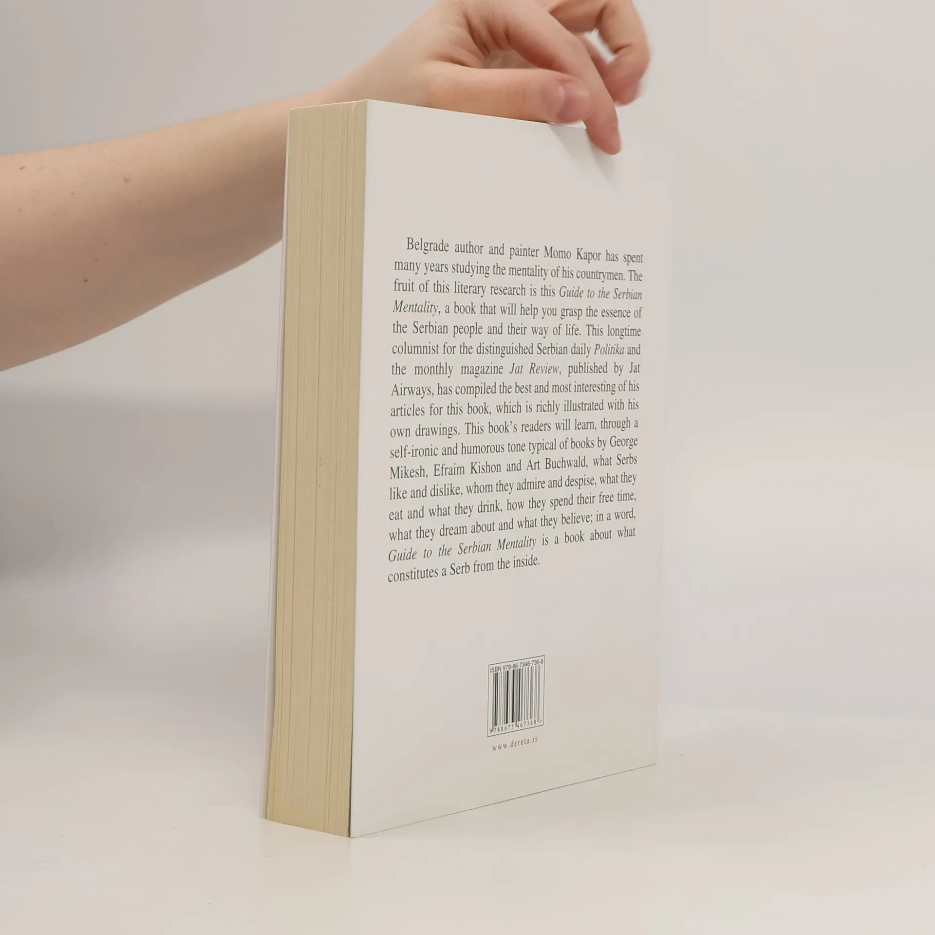 Belgrade author and painter Momo Kapor has spent many years studying the mentality of his countrymen. The fruit of this literary research is this book, a book that will help you grasp the essence of the Serbian people and their way of life. This longtime columnist for the distinguished Serbian daily Politika and the monthly magazine JAT Review, published by JAT Airways, has compiled the best and most interesting of his articles for this book, which is richly illustrated with his own drawings. This book's readers will learn, through a self-ironic and humorous tone typical of books by George Mikesh, Efraim Kishon and Art Buchwald, what Serbs like and dislike, whom they admire and despise, what they eat and what they drink, how they spend their free time, what they dream about and what they believe; in a word, book is about what constitutes a Serb from the inside.