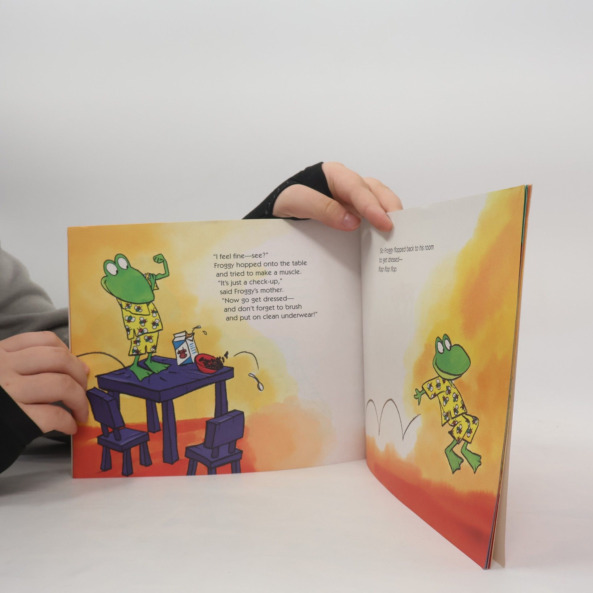 Froggy is going to the doctor for a checkup, and heas feeling a little nervous. "What if the doctor wants to give me a shot?" he thinks. He worries as he dresses and then he can't sit still in the waiting room. Finally, it's time to go in and change for his exam, but . . . OOOPS! He's forgotten his underwear! And that's just the beginning of Froggy's hilarious doctor visit that ends reassuringly with a gold star and a lollipop.