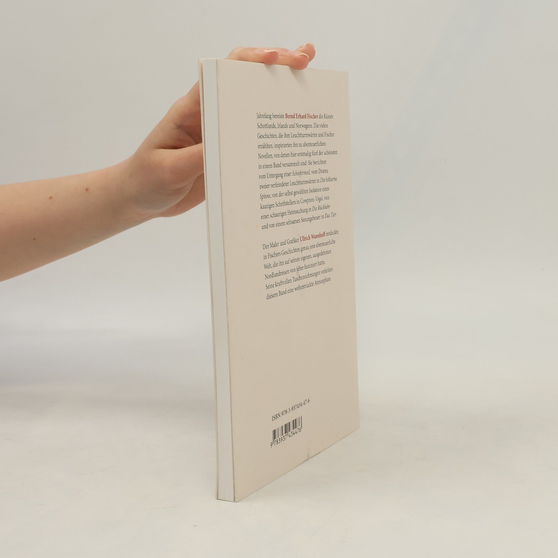 Jahrelang zog es Bernd Erhard Fischer immer wieder an die wilden Küsten Schottlands, Irlands und Norwegens. Die vielen Geschichten, die er von Leuchtturmwärtern und Fischern hörte, inspirierten ihn zu abenteuerlichen Novellen, von denen hier erstmalig fünf der schönsten in einem Band versammelt sind: Sie berichten vom Untergang einer Schieferinsel, vom Drama zweier verfeindeter Leuchtturmwärter in Die hölzerne Spinne, von der selbst gewählten Isolation eines kauzigen Schriftstellers in Comptons Vögel, von einer schaurigen Heimsuchung in Die Rückkehr und von einem seltsamen Seeungeheuer in Das Tier. Der Maler und Grafiker Ullrich Wannhoff, entdeckte in Fischers Geschichten genau jene abenteuerliche Welt, die ihn auf seinen eigenen, ausgedehnten Nordlandreisen von jeher fasziniert hatte. Seine kraftvollen Sepiazeichnungen verleihen diesem Band eine weltentrückte Atmosphäre.