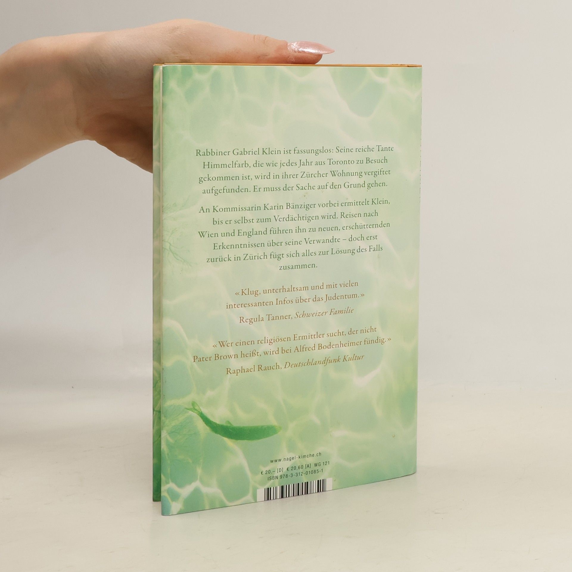 Als Kind floh Bianca Himmelfarb aus Nazi-Deutschland über die Schweiz nach England, und Rabbi Kleins Großvater war ihr Fluchthelfer. Später heiratete Bianca einen Industriellen; als er starb, wurde sie Unternehmerin und Kunstmäzenatin. Immer im Frühjahr residiert sie in ihrer Luxuswohnung am Zürichberg. Dort wird sie, nur wenige Stunden, nachdem Rabbi Klein sie besuchte, tot aufgefunden. Selbstmord, heißt es. Ein Verbrechen, vermutet der Rabbi, Kommissarin Bänziger jedoch glaubt nicht recht daran. – Gabriel Kleins Gelehrtheit, seine Einfühlung und seine Neugier machen ihn zu einem angesehenen Rabbi, aber auch, zum Leidwesen der Kriminalpolizei, zu einem unschlagbar guten Detektiv.