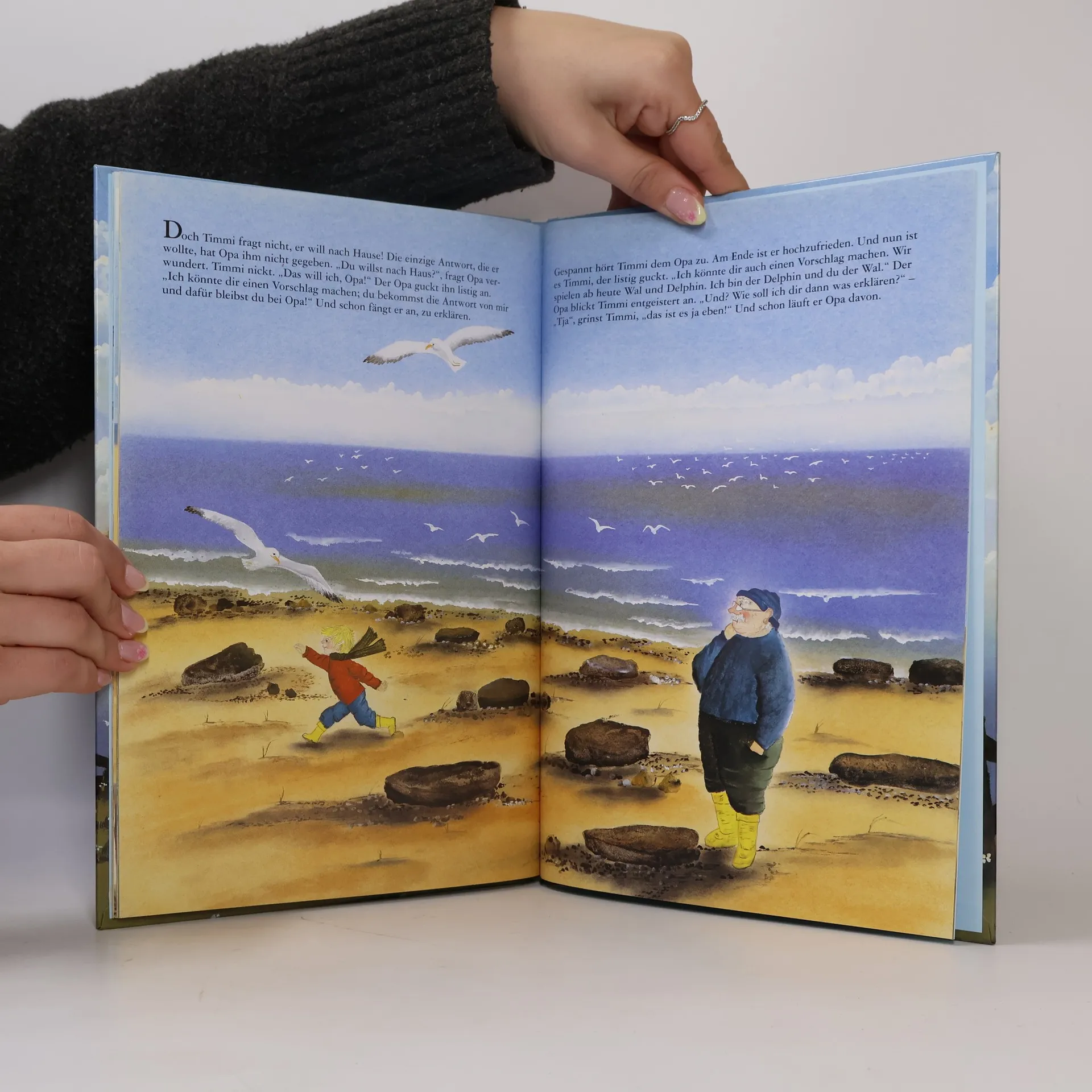 Timmie besucht zum ersten mal seinen Opa, der auf einer Nordseeinsel lebt. Opa erklärt ihm alles Neue: das Leben im Watt, Ebbe und Flut, die Dünen. Aber Timmies Frage, warum Delphine sprechen und Wale singen, kann er anfangs nicht beantworten.