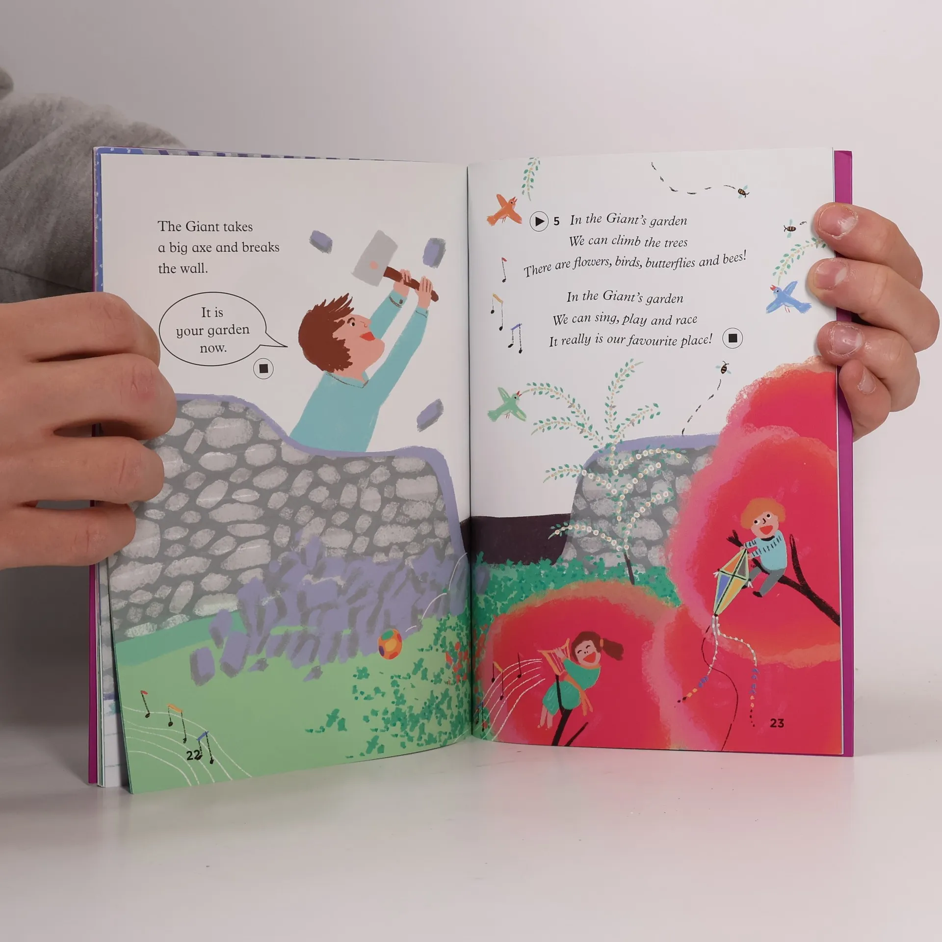 Why doesn’t summer come to the Giant’s garden? Find out how the Selfish Giant changes and learns about friendship. A Giant lives in a castle with a beautiful garden. But the Giant is selfish and wants it all to himself. He doesn’t want the children to play in his garden. Winter comes and never leaves until... something happens and the Giant learns about love and sharing! Prečo do Obrovej záhrady nikdy nepríde leto? Zisti, ako sa sebecký Obor zmení a objaví, čo je to priateľstvo. Obor žije v zámku s nádhernou záhradou. Ale keďže je sebecký, všetko chce iba pre seba. Nechce, aby sa v jeho záhrade hrali deti. Vždy je u neho zima, kým... sa niečo nestane a Obor sa nenaučí, ako ľúbiť a deliť sa.