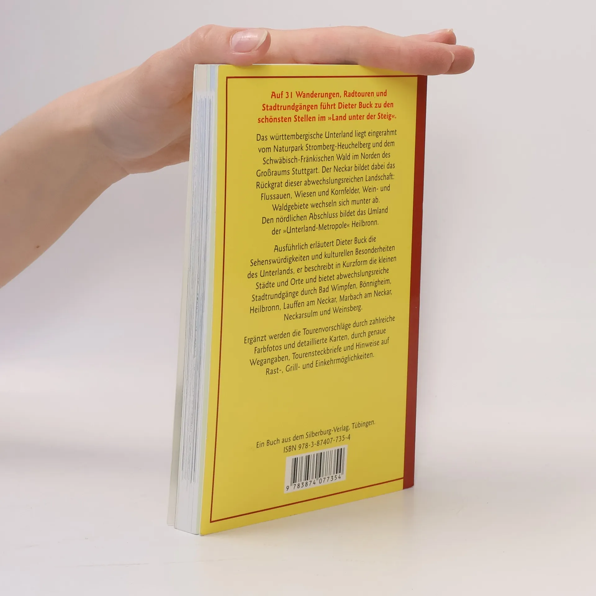 Auf 31 Wanderungen, Radtouren und Stadtrundgängen führt der beliebte Wanderbuchautor Dieter Buck zu den schönsten Stellen im württembergischen Unterland. Er bewegt sich zwischen Naturpark Stromberg-Heuchelberg und dem Schwäbisch-Fränkischen Wald im Norden des Großraums Stuttgart. Den nördlichen Abschluss bilden Ausflugziele im Heilbronner Land. Links und rechts des Neckars lädt die abwechslungsreiche Landschaft zu Wander- und Radtouren ein: Flussauen, Wiesen und Kornfelder, Wein- und Waldgebiete wechseln sich munter ab. Der neue Ausflugsführer lockt in Städte und Dörfer und führt zu Burgen, Schlössern und Kapellen. Wanderer und Radfahrer erleben eine pittoreske Fachwerkidylle, malerische Weinberge und weite Ausblicke ins Neckartal. Ausführlich erläutert Dieter Buck die Sehenswürdigkeiten und kulturellen Besonderheiten des Unterlands und bietet ausgewählte, abwechslungsreiche Stadtrundgänge durch Bad Wimpfen, Bönnigheim, Heilbronn, Lauffen am Neckar, Marbach am Neckar, Neckarsulm und Weinsberg. Ergänzt werden die Tourenvorschläge durch zahlreiche Farbfotos und detaillierte Karten, durch genaue Zeit- und Wegangaben, und Hinweise auf Rast-, Grill- und Einkehrmöglichkeiten.