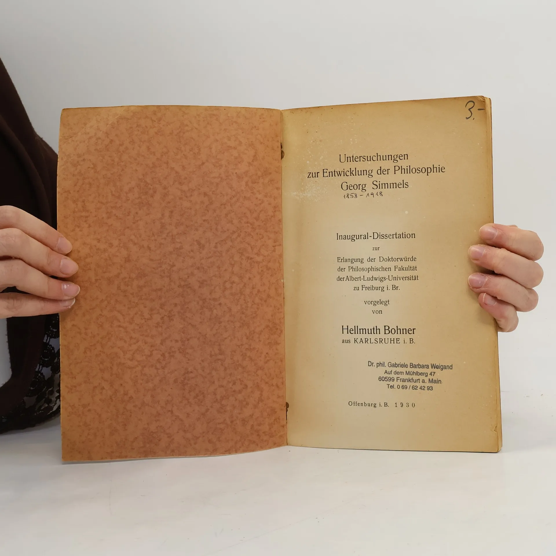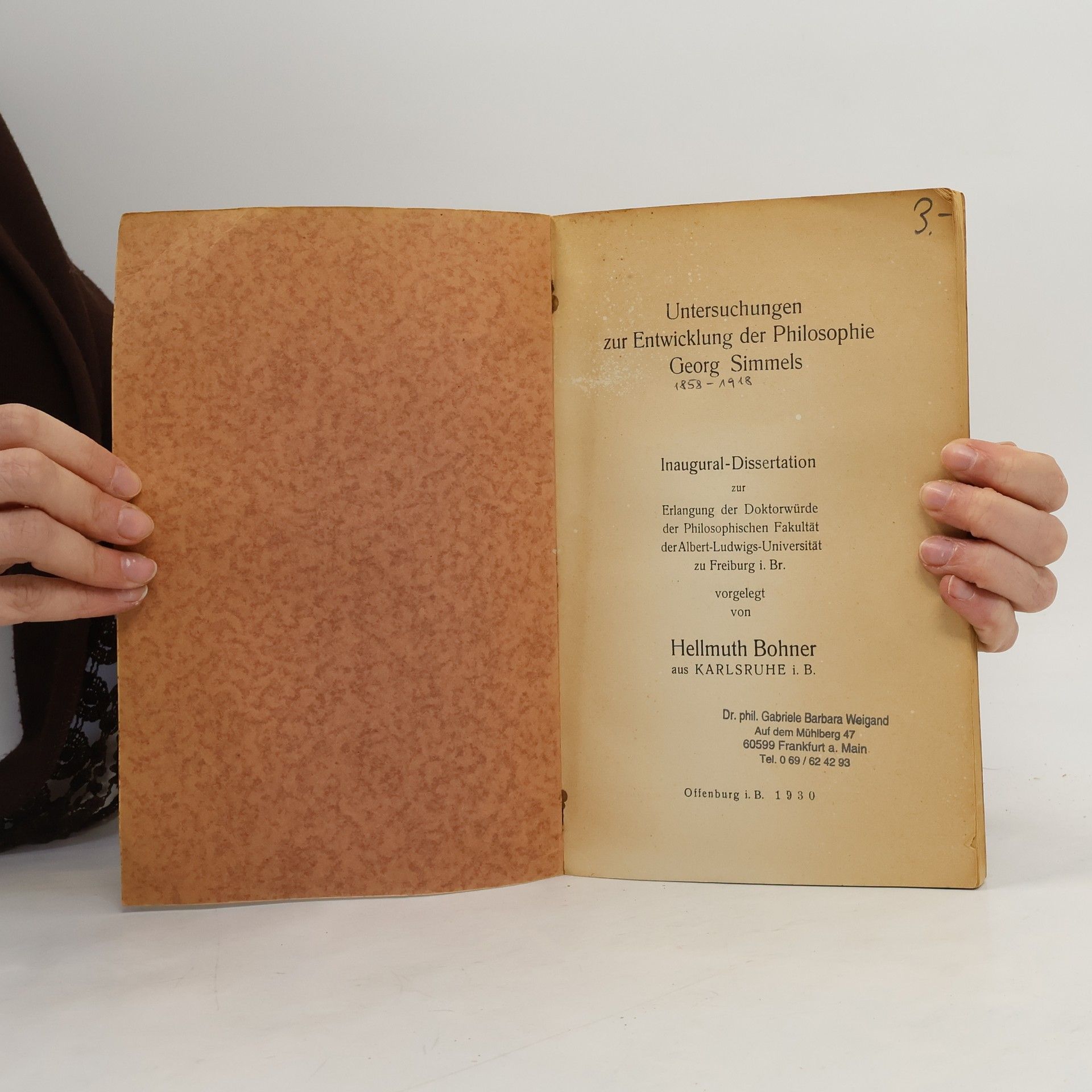 Untersuchungen zur Entwicklung der Philosophie Georg Simmels, Hellmuth Bohner