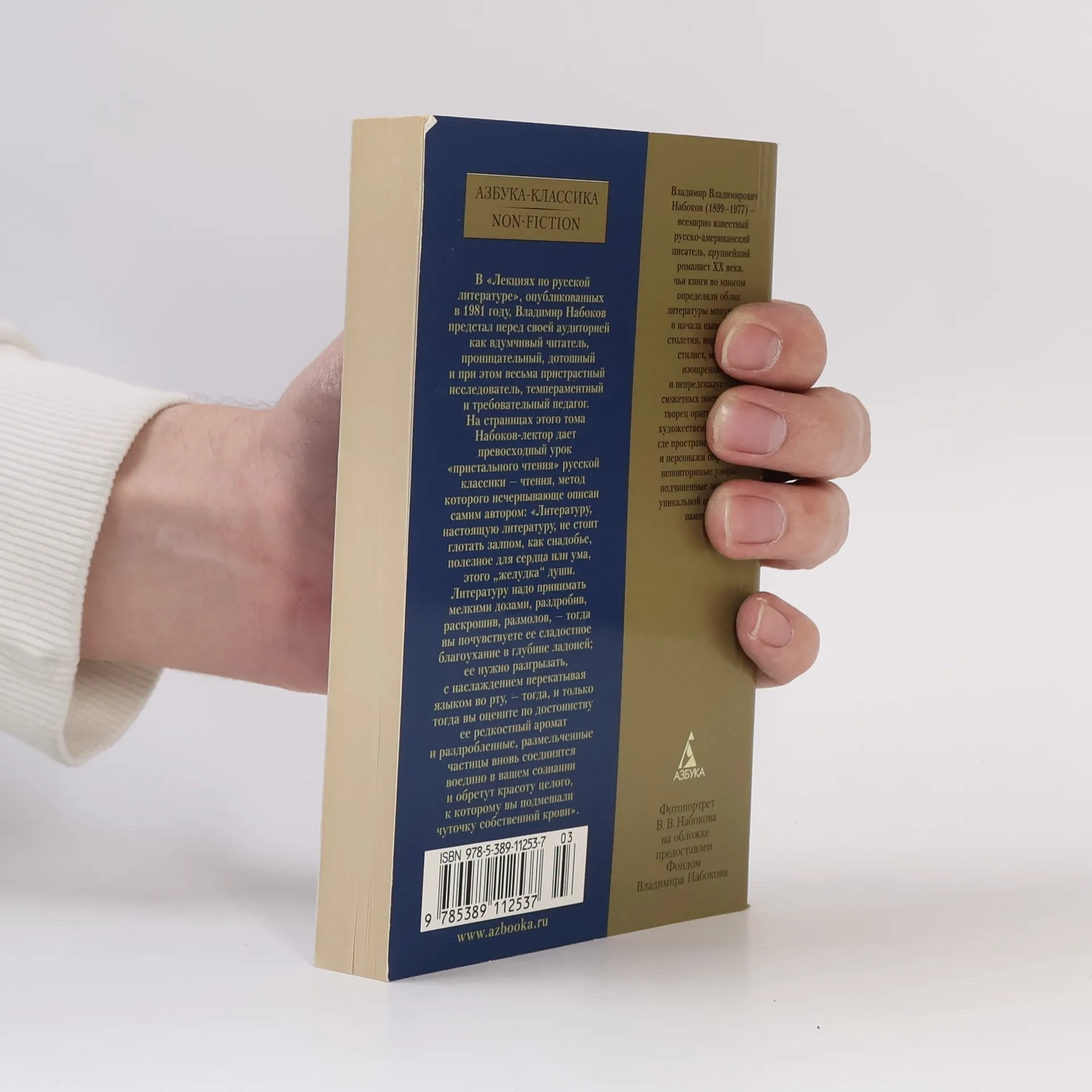 В «Лекциях по русской литературе», впервые опубликованных в 1981 году, Владимир Набоков, известный как блестящий романист, предстал в неожиданном свете. Лекционные курсы «Мастера европейской прозы» и «Русская литература в переводах», подготовленные для студентов колледжа Уэлсли и Корнеллского университета в 1940–1950-е годы, раскрывают Набокова как вдумчивого читателя и требовательного педагога. Он демонстрирует свою репутацию виртуозного художника слова, предлагая превосходный урок «пристального чтения» произведений Гоголя, Тургенева, Достоевского, Толстого, Чехова и Горького. Набоков описывает метод чтения, который подчеркивает важность внимательного восприятия литературы: «Литературу, настоящую литературу, не стоит глотать залпом, как снадобье... ее нужно разгрызать, с наслаждением перекатывая языком во рту». Такой подход позволяет читателю оценить редкостный аромат произведений и соединить их частицы в сознании, обретая красоту целого.