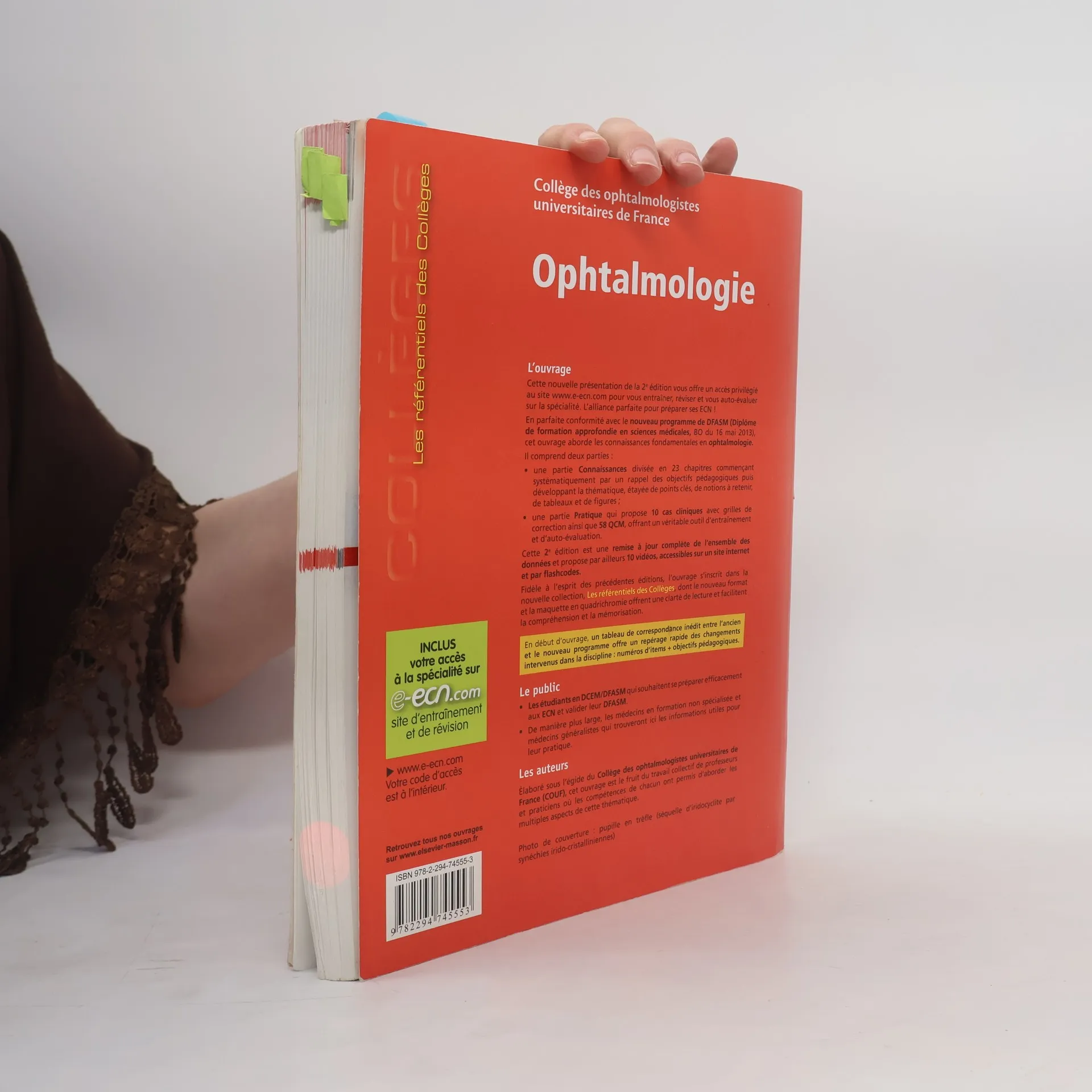 Cette nouvelle présentation de la 2e édition vous offre un accès privilégié au site pour vous entraîner, réviser et vous auto-évaluer sur la spécialité. L'alliance parfaite pour préparer ses ECN. En parfaite conformité avec le nouveau programme de DFASM (Diplôme de formation approfondie en sciences médicales, BO du 16 mai 2013), cet ouvrage aborde les connaissances fondamentales en ophtalmologie. Il comprend deux parties : une partie Connaissances divisée en 23 chapitres commençant systématiquement par un rappel des objectifs pédagogiques puis développant la thématique, étayée de points clés, de notions à retenir, de tableaux et de figures ; une partie Pratique qui propose 10 cas cliniques avec grilles de correction ainsi que 58 QCM, offrant un véritable outil d'entraînement et d'auto-évaluation. Cette 2e édition est une remise à jour complète de l'ensemble des données et propose par ailleurs 10 vidéos, accessibles sur un site internet et par flashcodes. Fidèle à l'esprit des précédentes éditons, l'ouvrage s'inscrit dans la nouvelle collection, Les référentiels des collèges, dont le nouveau format et la maquette en quadrichromie offrent une clarté de lecture et facilitent la compréhension et la mémorisation. En début d'ouvrage, un tableau de correspondance inédit entre l'ancien et le nouveau programme offre un repérage rapide des changements intervenus dans la discipline : numéros d'items + objectifs pédagogiques.