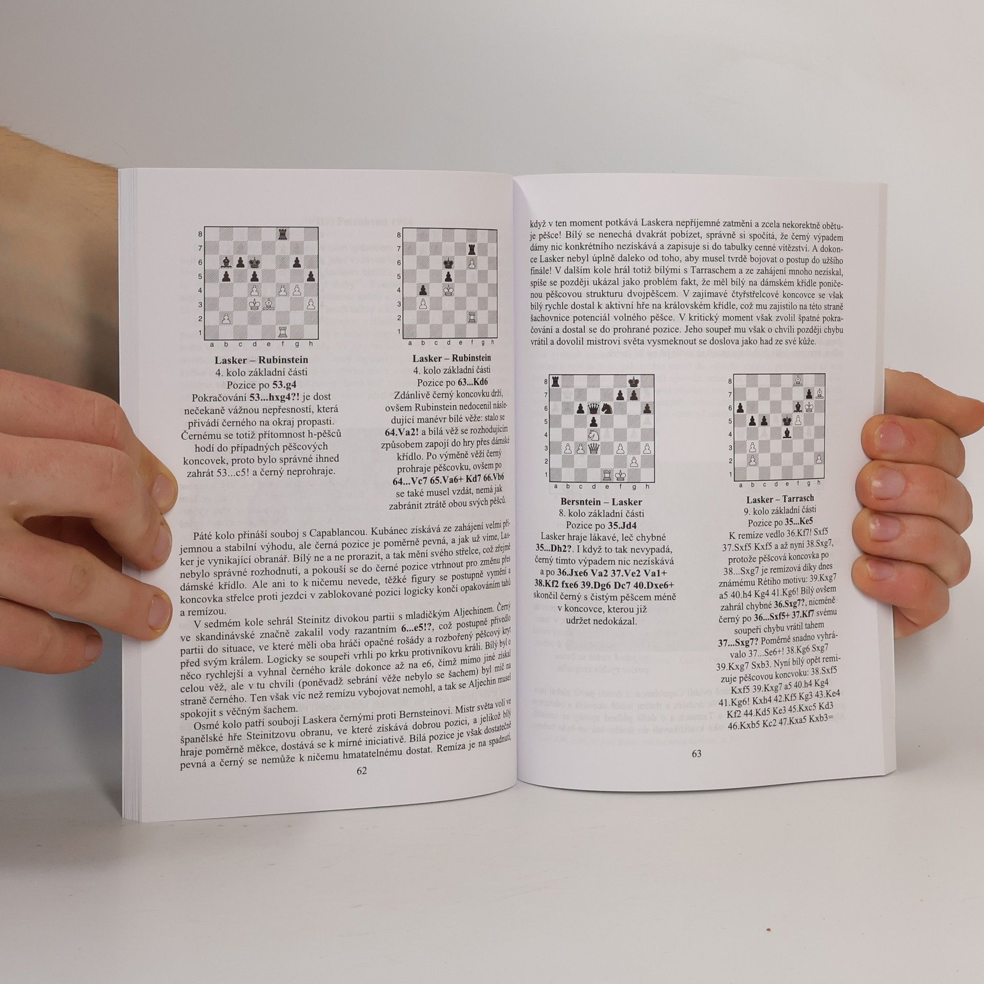 Historie Laskerových zápasů o mistra světa, doplněná více než 100 diagramy s komentáři, které zachycují rozhodující nebo důležité momenty v jednotlivých partiích o titul. Druhý mistr světa, Emanuel Lasker, 1868-1941, vládl šachovému trůnu 27 let, od roku 1894, kdy získal titul po výhřenad Steinitzem až do roku 1921, kdy prohrál slavný zápas s Capablankou. Lasker je dodnes považován za jednoho z nejsilnějších šachistů v historii. Autor se v knize zaměřil na Laskerův životopis a zejména na průběh zápasů o mistra světa, kterých Lasker sehrál celkem osm: odvetu se Steinitzem 1896/97 vyhrál 10:2 (=5), v roce 1907 obhájil titul proti Marshallovi 8:0 (=7), 1908 zvítězil s Tarraschem 8:3 (=5). V roce 1909 hladce vyhrál s Janowskim 7:1 (=2) a v tomtéž roce těsně udržel titul se Schlechterem 1:1 (=8). Jeho poslední vyhraný zápas byl v roce 1908 s Janowskim 8:0 (=3). Knihu doplňuje několik vybraných komentovaných a asi 180 nekomentovaných partií Laskera, výběr jeho kombinací, přehled výsledků.