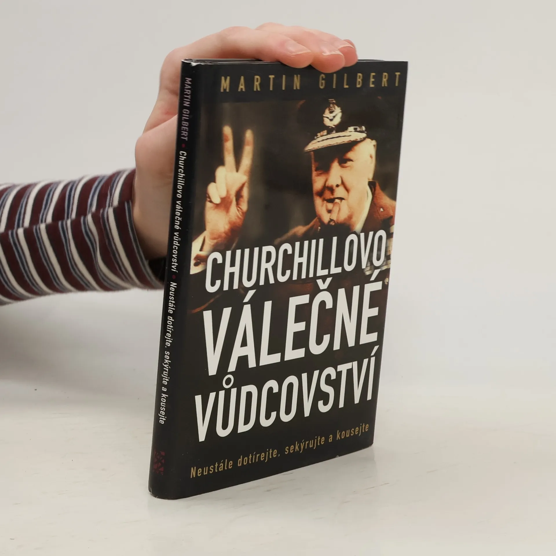 Knížka Churchillovo válečné vůdcovství s podtitulem Neustále dotírejte, sekýrujte a kousejte přináší text historické přednášky pronesené na Torontské universitě. Tato každoroční přednáška, konaná k uctění památky Barbary Frumové, se věnuje tématům s aktuálním zájmem v historických souvislostech a je vysílána Radio One kanadské společnosti CBS. Přednáška nabízí pronikavý pohled na vůdcovství Winstona Churchilla během druhé světové války, napsaný největším znalcem tohoto britského politika. Martin Gilbert odhaluje lidskou stránku Churchilla, který, ač často citlivý a utrápený, našel sílu vést svůj národ z nejtemnějších časů k vítězství nad silným nepřítelem. Čtenáře jistě zaujme srovnání Churchillovy taktiky s postoji dnešních politických vůdců. Sir Martin Gilbert, spoluautor oficiálního životopisu Winstona Churchilla, je jedním z nejvýznamnějších historiků moderní doby. Napsal celkem třiasedmdesát knih, včetně biografie Churchill: Životopis a uznávaných prací o světových válkách. Je čestným členem správní rady oxfordské Merton College a významným členem Hillside College v Michiganu. Jeho webová stránka je www.martingilbert.com.