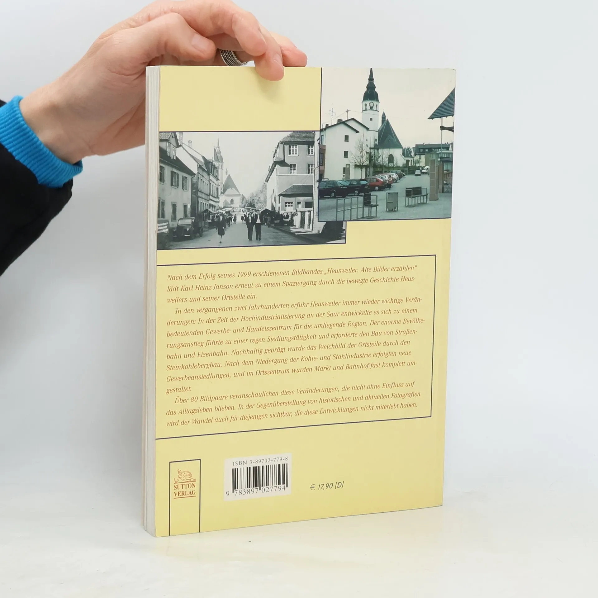 Nach dem Erfolg seines 1999 erschienenen Bildbandes „Heusweiler. Alte Bilder erzählen“ lädt Karl Heinz Janson erneut zu einem Spaziergang durch die bewegte Geschichte Heusweilers und seiner Ortsteile ein. In den vergangenen zwei Jahrhunderten erfuhr Heusweiler immer wieder wichtige Veränderungen: In der Zeit der Hochindustrialisierung an der Saar entwickelte es sich zu einem bedeutenden Gewerbe- und Handelszentrum für die umliegende Region. Der enorme Bevölkerungsanstieg führte zu einer regen Siedlungstätigkeit und erforderte den Bau von Straßenbahn und Eisenbahn. Nachhaltig geprägt wurde das Weichbild der Ortsteile durch den Steinkohlebergbau. Nach dem Niedergang der Kohle- und Stahlindustrie erfolgten neue Gewerbeansiedlungen, und im Ortszentrum wurden Markt und Bahnhof fast komplett umgestaltet. Über 80 Bildpaare veranschaulichen diese Veränderungen, die nicht ohne Einfluss auf das Alltagsleben blieben. In der Gegenüberstellung von historischen und aktuellen Fotografien wird der Wandel auch für diejenigen sichtbar, die diese Entwicklungen nicht miterlebt haben.