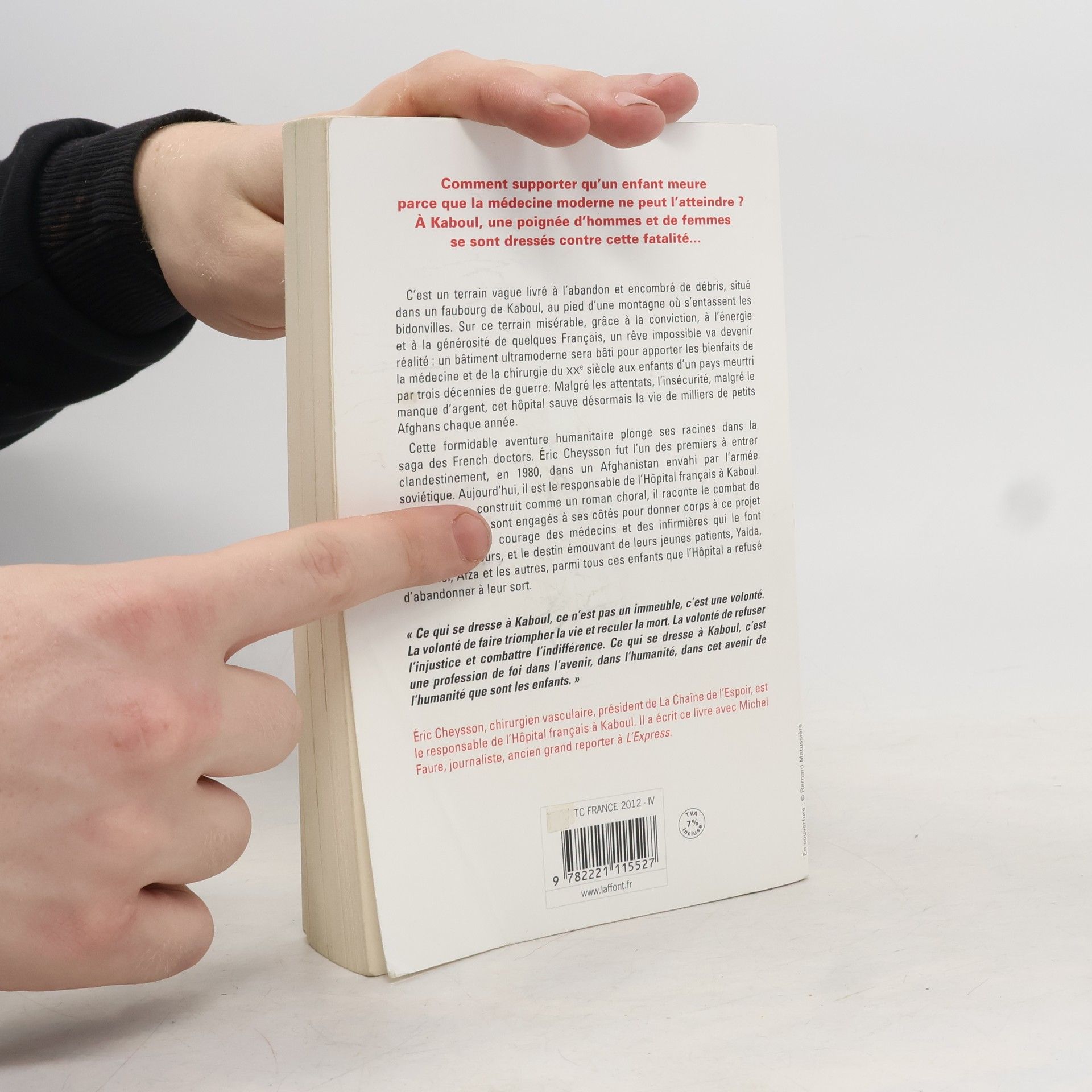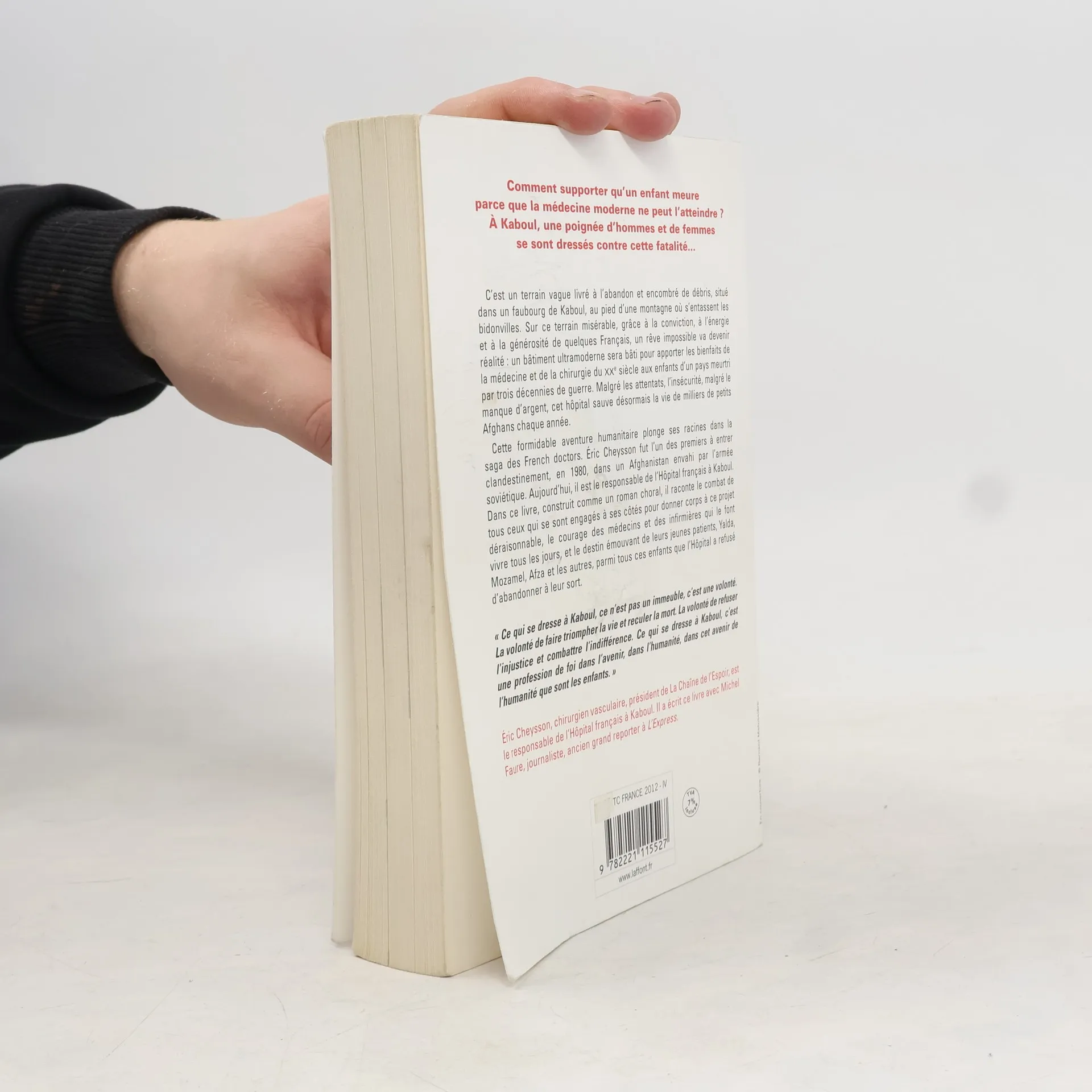 Dans un faubourg de Kaboul, un terrain vague abandonné devient le site d’un hôpital aux normes internationales, grâce à la détermination d’hommes et de femmes. Ce projet ambitieux vise à offrir aux enfants afghans les soins médicaux et chirurgicaux du XXIe siècle, dans un pays ravagé par des décennies de guerre et de crise. Malgré les attentats, le fanatisme et le manque de ressources, cet hôpital sauve chaque année des milliers de vies. Peu savent que ce miracle est le fruit d'une poignée de Français, dont Éric Cheysson, responsable de l’hôpital. L’histoire, présentée comme un roman choral, entrelace les parcours de journalistes, artistes, entrepreneurs et médecins engagés dans ce projet humanitaire. On y découvre des personnages tels que Kate, l'infirmière écossaise, Alexander, le pédiatre allemand, et Nadjeebullah, le chirurgien afghan, ainsi que des enfants comme Yalda et Mozamel, atteints de malformations cardiaques, et Afzal, dont l'œsophage a été brûlé par l'acide. Le récit suit leurs destins, heureux ou tragiques, alors que l'hôpital se construit dans une course contre la montre pour offrir une seconde chance à ceux que la maladie ou l'accident a condamnés.