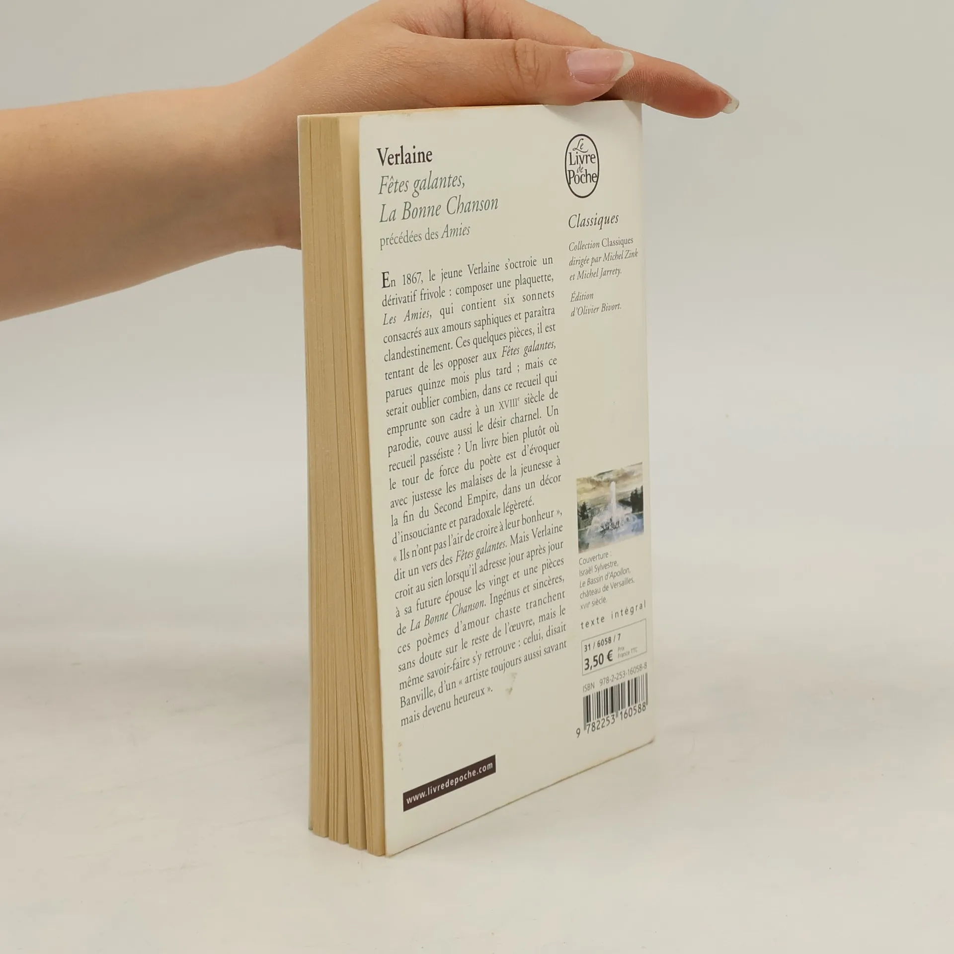 En 1867, le jeune Verlaine s’octroie un dérivatif frivole : composer une plaquette, Les Amies , qui contient six sonnets consacrés aux amours saphiques et paraîtra clandestinement. Ces quelques pièces, il est tentant de les opposer aux Fêtes galantes , parues quinze mois plus tard ; mais ce serait oublier combien, dans ce recueil qui emprunte son cadre à un xviiie siècle de parodie, couve aussi le désir charnel. Un recueil passéiste ? Un livre bien plutôt où le tour de force du poète est d’évoquer avec justesse les malaises de la jeunesse à la fin du Second Empire, dans un décor d’insouciante et paradoxale légèreté.«Ils n’ont pas l’air de croire à leur bonheur», dit un vers des Fêtes galantes . Mais Verlaine croit au sien lorsqu’il adresse jour après jour à sa future épouse les vingt et une pièces de La Bonne Chanson . Ingénus et sincères, ces poèmes d’amour chaste tranchent sans doute sur le reste de l’œuvre, mais le même savoir-faire s’y retrouve : celui, disait Banville, d’un «artiste toujours aussi savant mais devenu heureux».Edition présentée et annotée par Olivier Bivort.