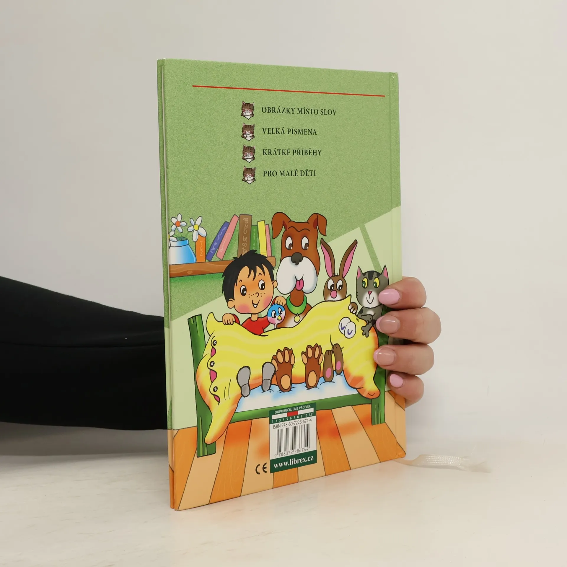Čtení s obrázky, které nahrazují některá slova v humorných textech. Předškolní děti i začínající čtenáři se tak mohou aktivně zúčastnit "čtení" krátkých dětských příběhů a naučit se písmenka - text je tištěn velkými písmeny (verzálkami), kterými ve škole děti při čtení začínají.