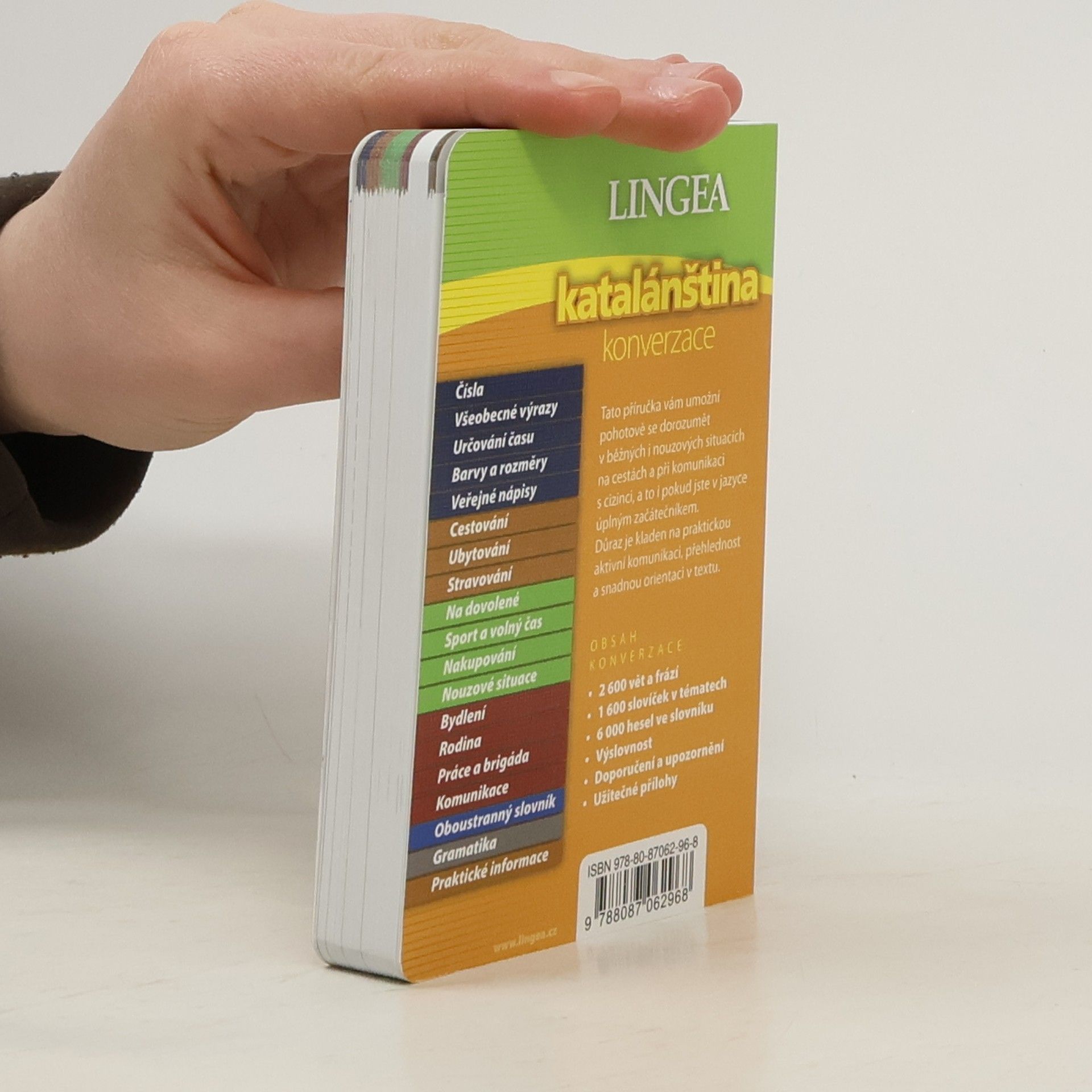 Tato publikace je skutečným unikátem, neboť pro tento jazyk dosud neexistuje ani slovník, ani konverzace. Přitom jím hovoří na 10 milionů lidí ve Španělsku od hranic s Francií až po Valencii, na Baleárských ostrovech, ve Španělsku je jedním z úředních jazyků a v Andoře dokonce jazykem jediným. Jedinečná příručka svého druhu. Nyní tedy máte možnost si zakoupit v jedné knížce podrobnou konverzaci, slovník s 6000 hesly a navíc první přehled gramatiky.