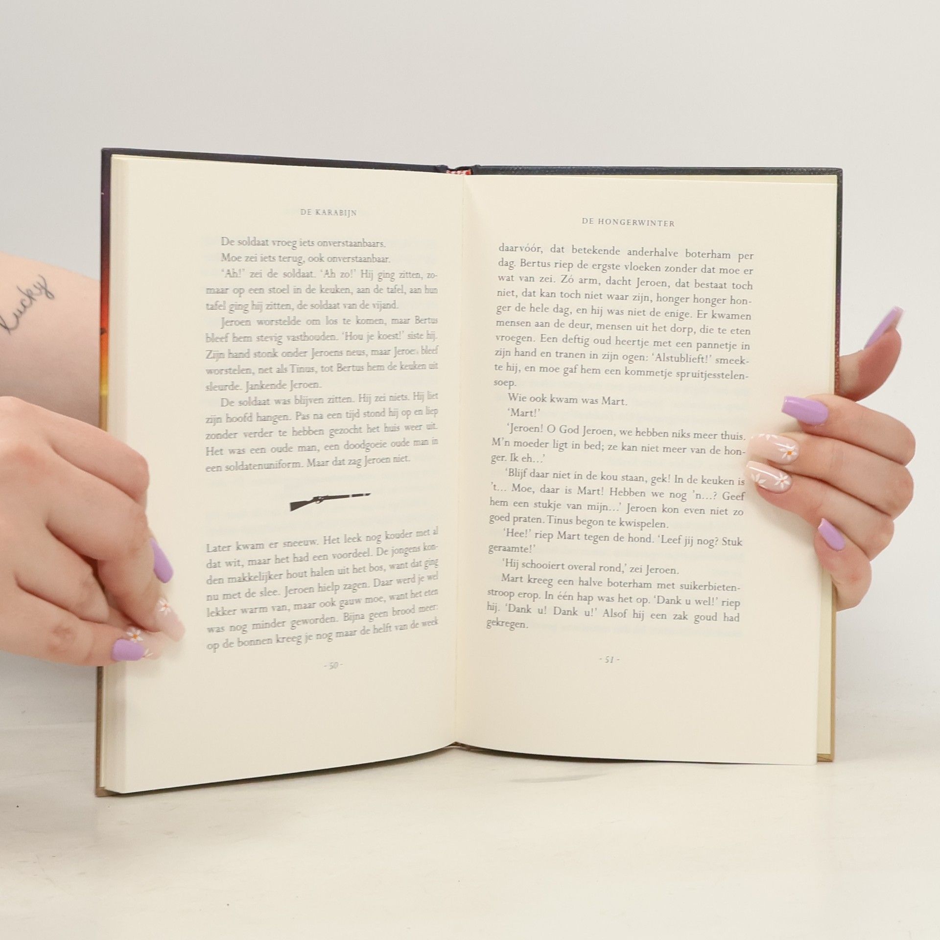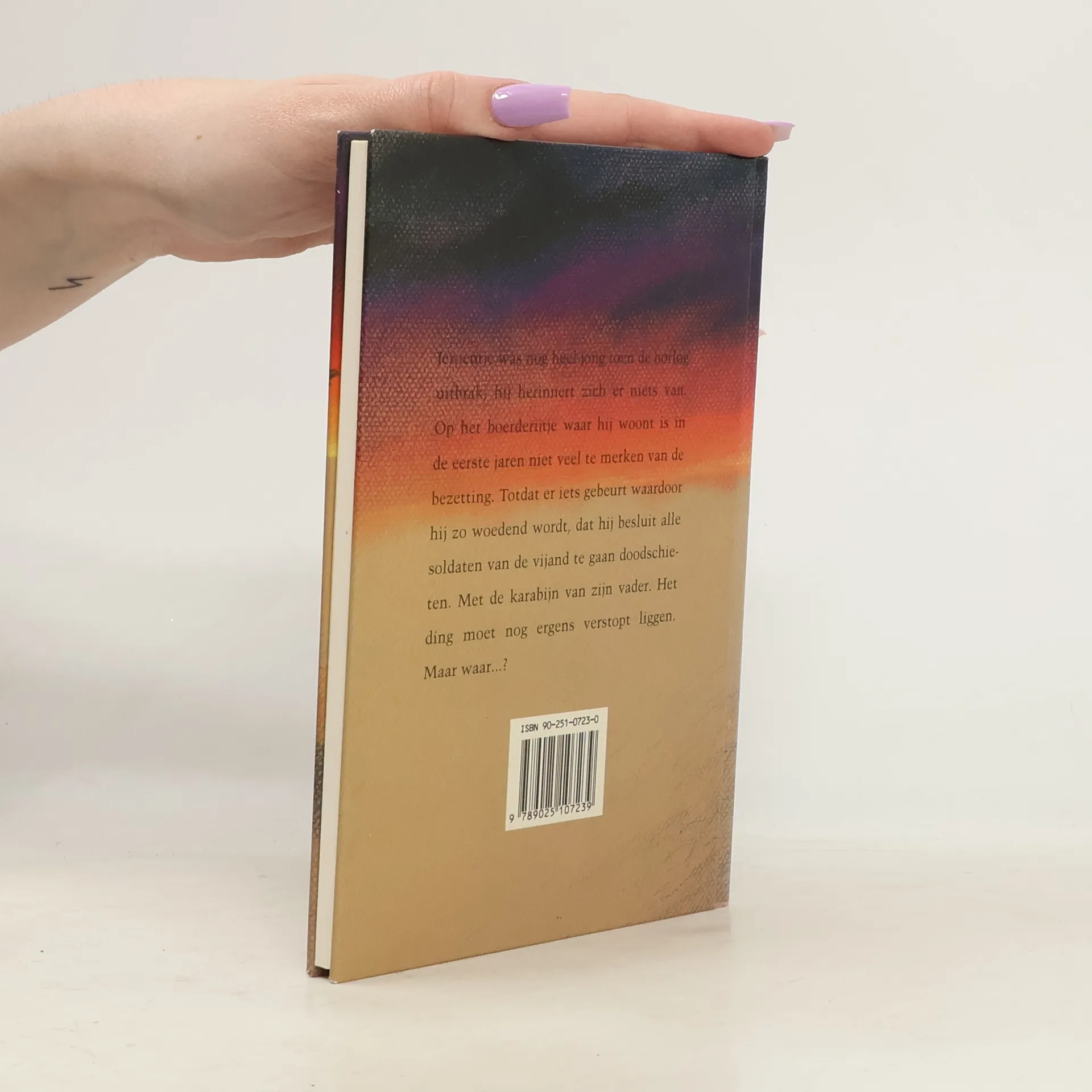 Jeroentje was nog heel jong toen de oorlog uitbrak, hij herinnert zich er niets van. Op het boerderijtje waar hij woont is in de eerste jaren niet veel te merken van de bezetting. Totdat er iets gebeurt waardoor hij zo woedend wordt, dat hij besluit alle soldaten van de vijand te gaan doodschieten. Met de karabijn van zijn vader. Het ding moet nog ergens verstopt liggen. Maar waar...?