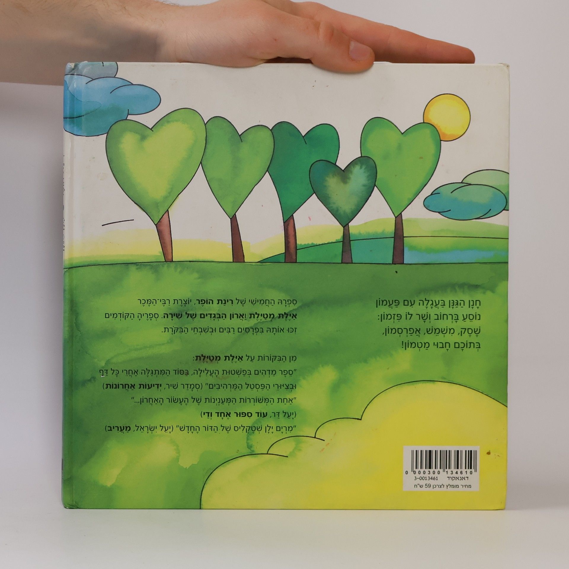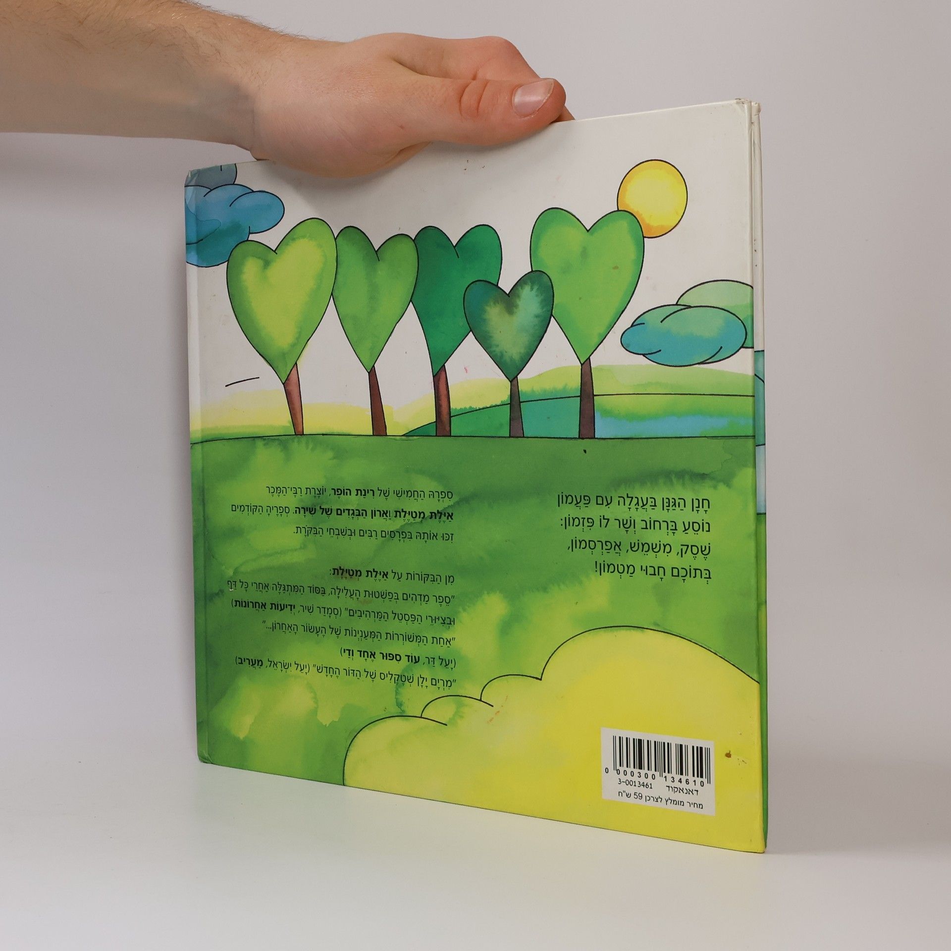 "חנן הגנן בעגלה עם פעמון נוסע ברחוב ושר לו פזמון: שסק, משמש, אפרסמון, בתוכם חבוי מטמון!"--מן הכריכה האחורית.